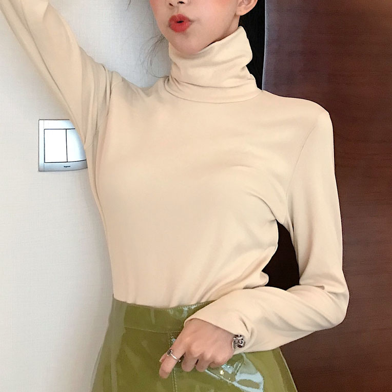 早秋上衣女慵懶長袖t袖女翻高領打底衫修身內搭保暖加絨加厚上衣