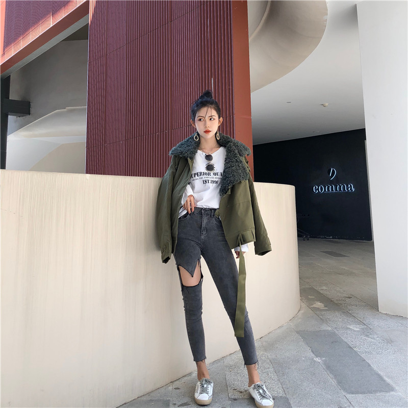 棉服女冬季新款chic復古工裝大衣寬松休閑大毛領長袖加厚開衫外套