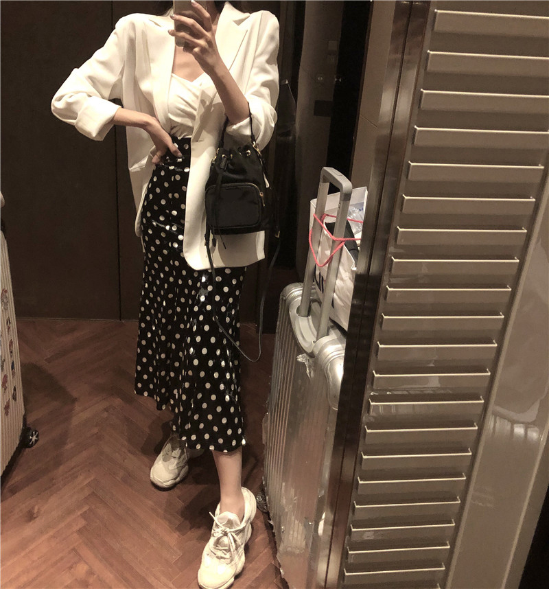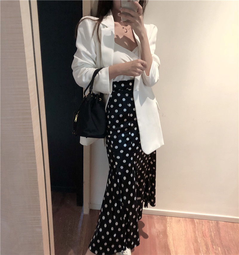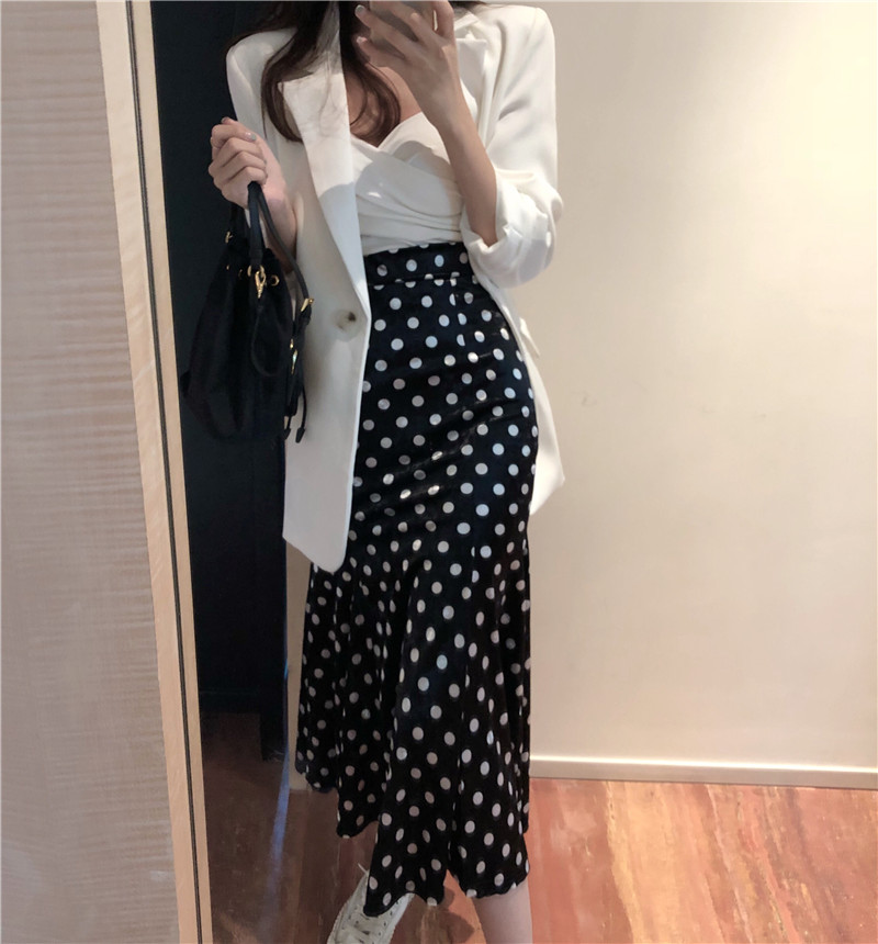 / 波點魚尾半身裙彈力高腰裙子女2018新款時尚百搭復古韓版秋裝長裙