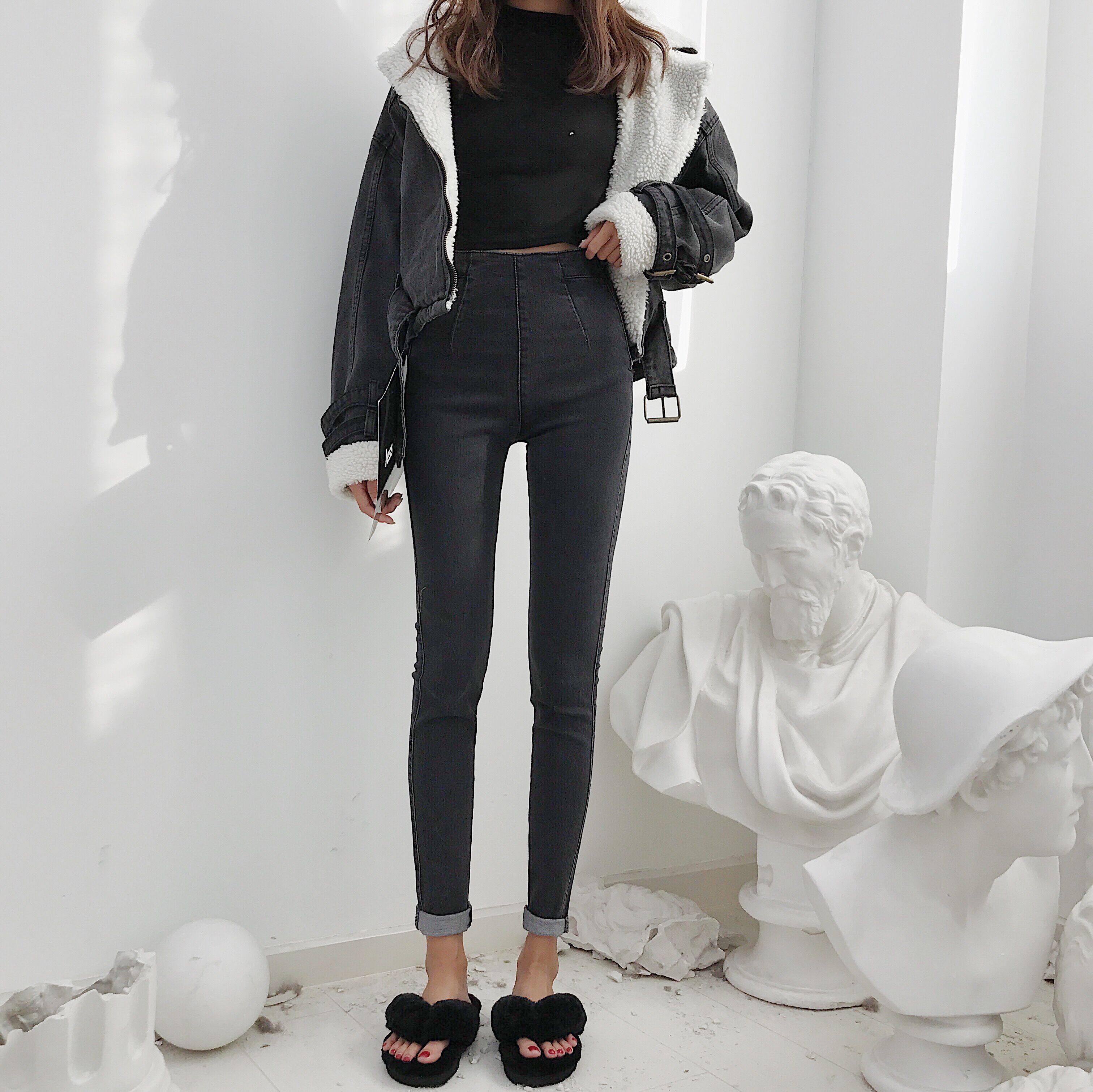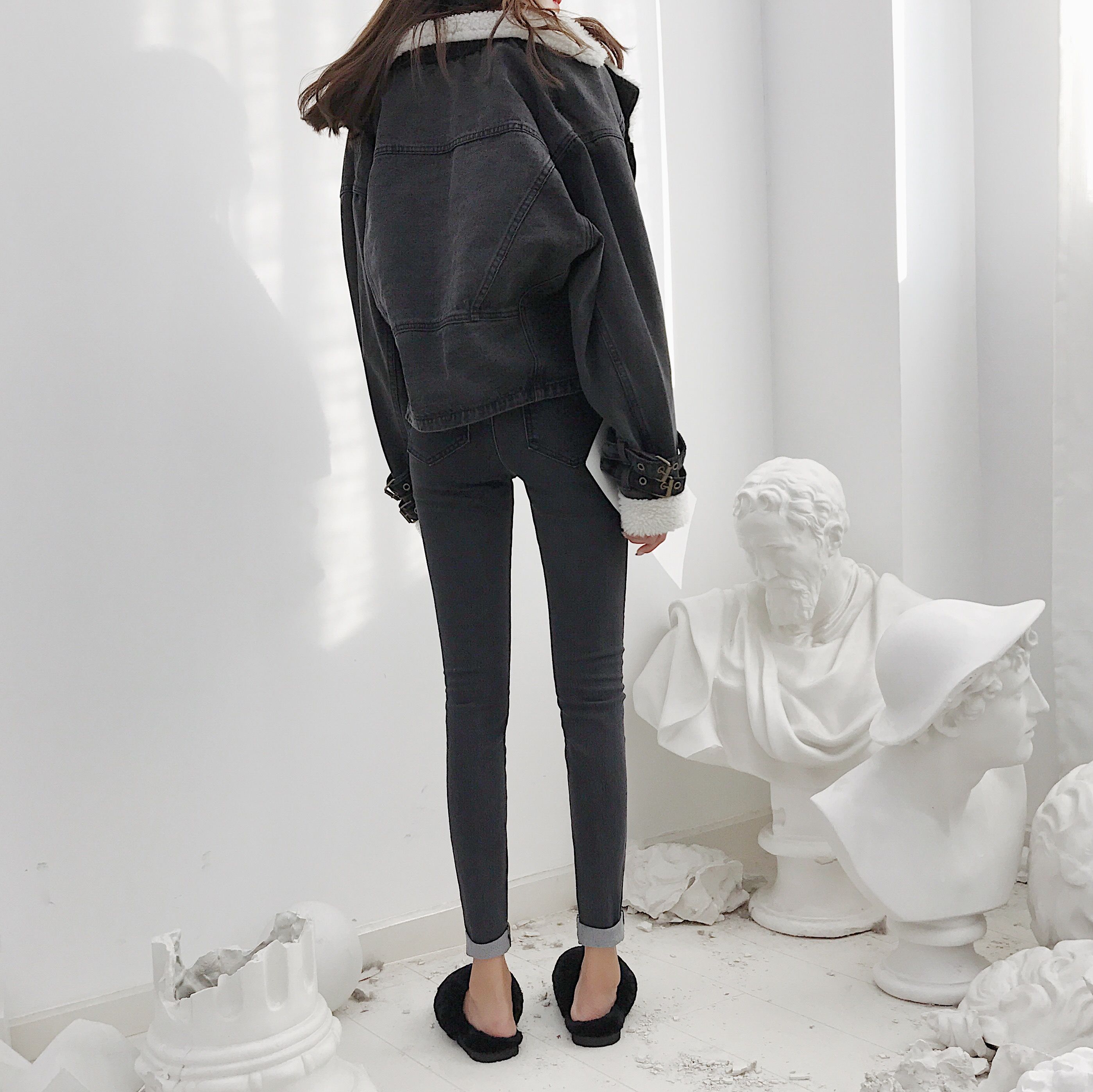 / 韓國時尚chic新款加絨拼接牛仔外套女秋冬寬松百搭機車長袖開衫潮