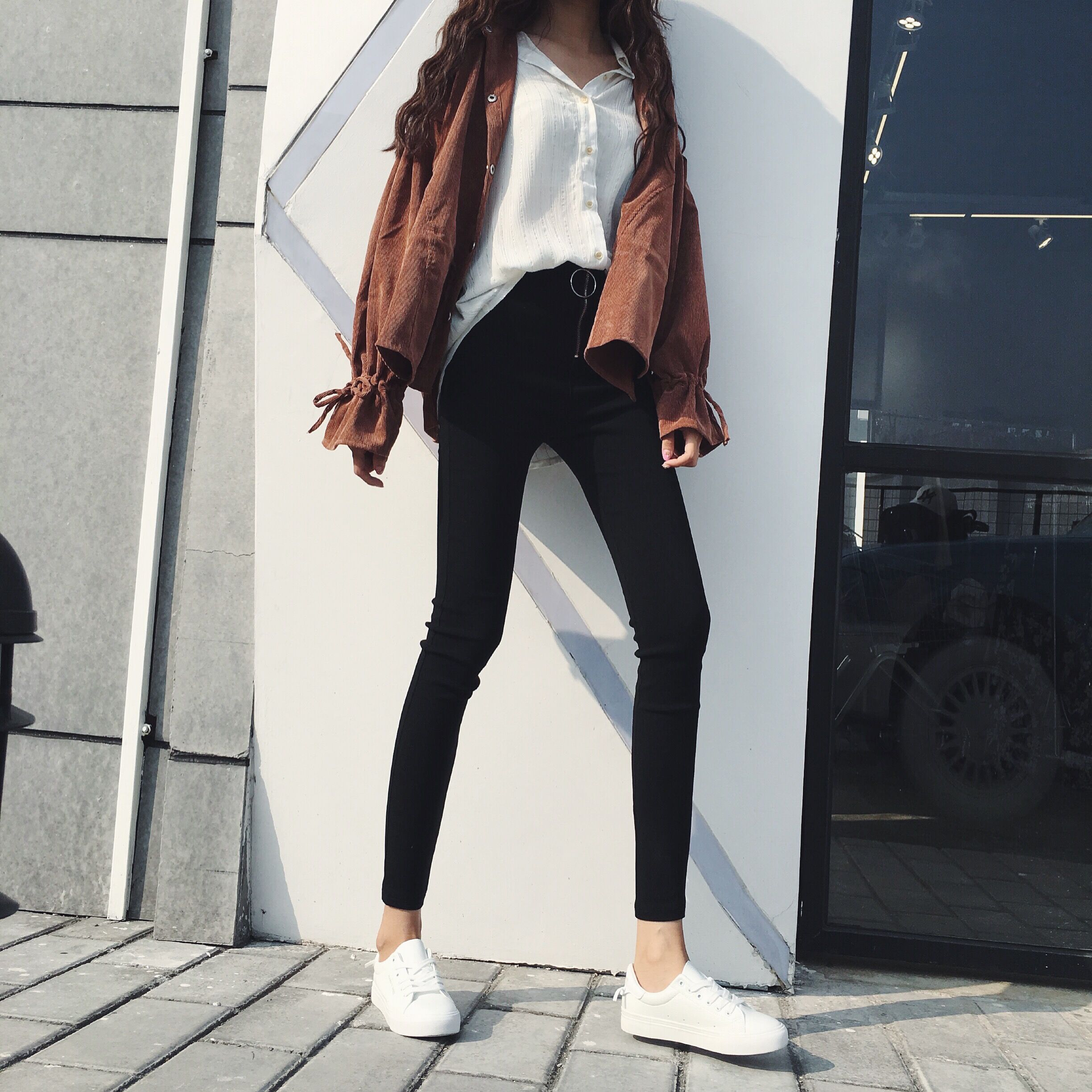 / 褲子2018新款韓國圓環設計修身顯瘦時尚打底褲女彈力緊身小腳褲潮