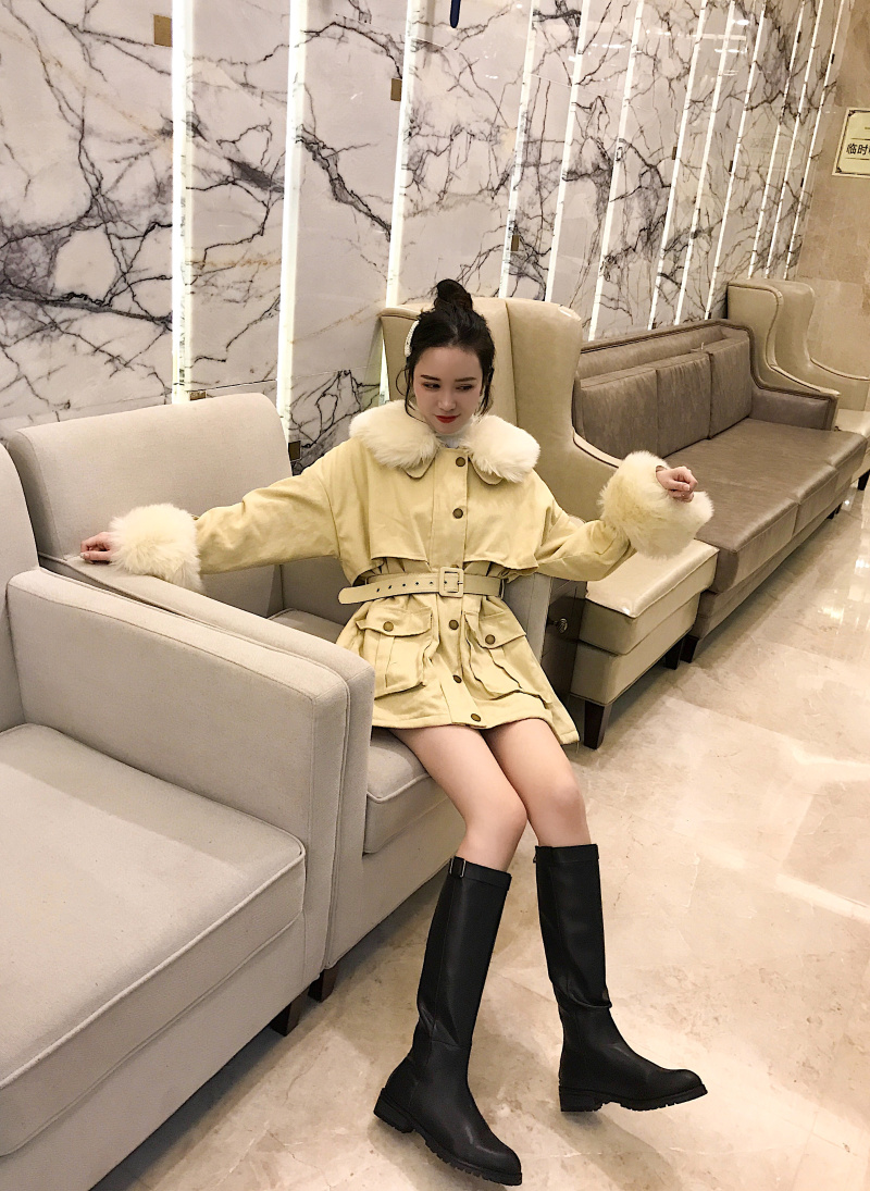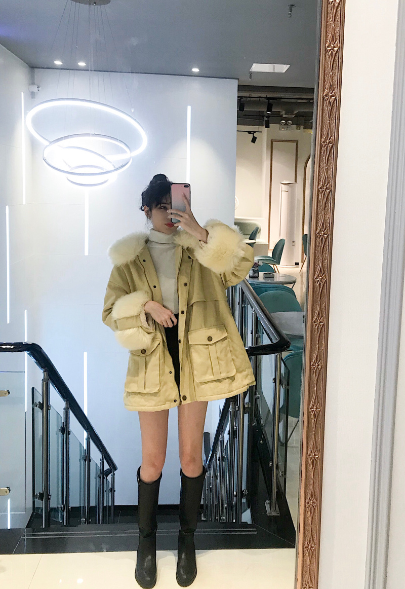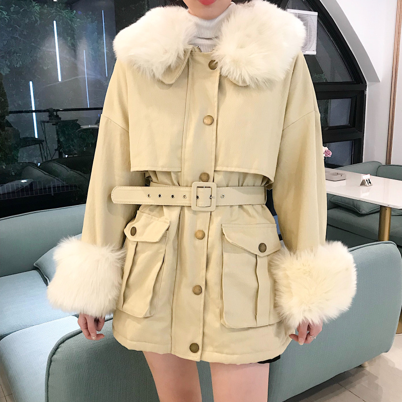 毛呢外套女秋冬大衣女新款韓版大毛領收腰棉服中長款加絨棉衣外套