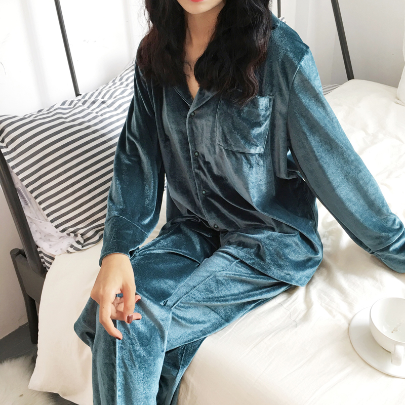 秋季新款復古女外穿絲絨長袖睡衣長褲家居服天鵝絨韓版舒適套裝潮