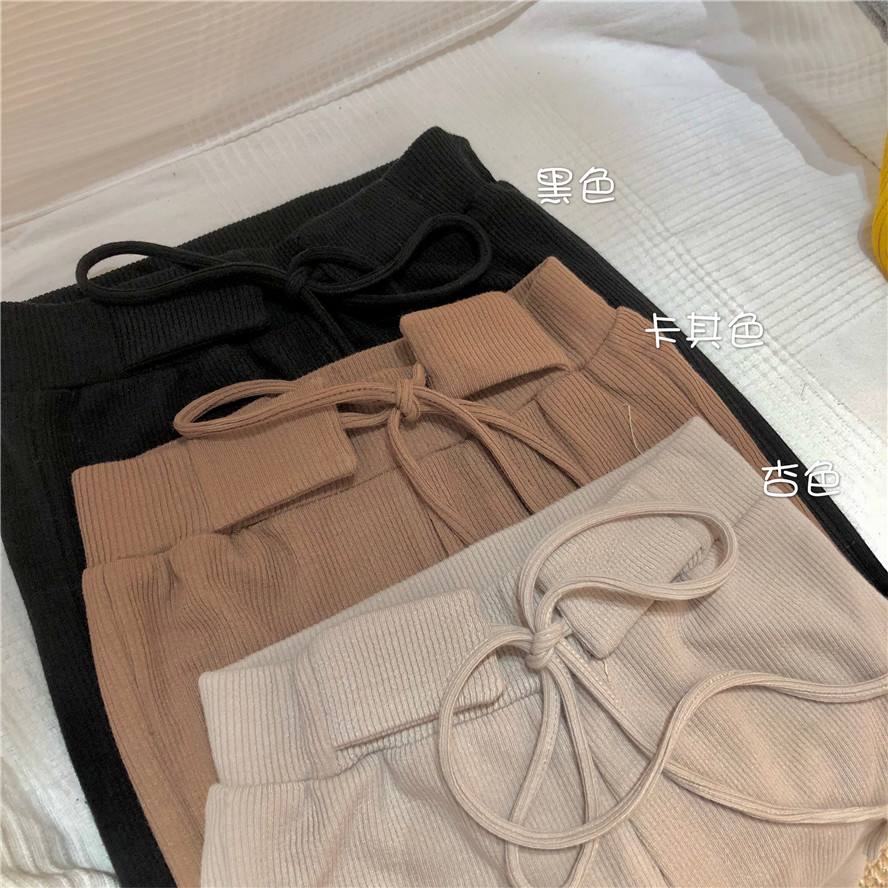 (針織面料有彈性,腰頭是松緊腰,前面可以系帶)