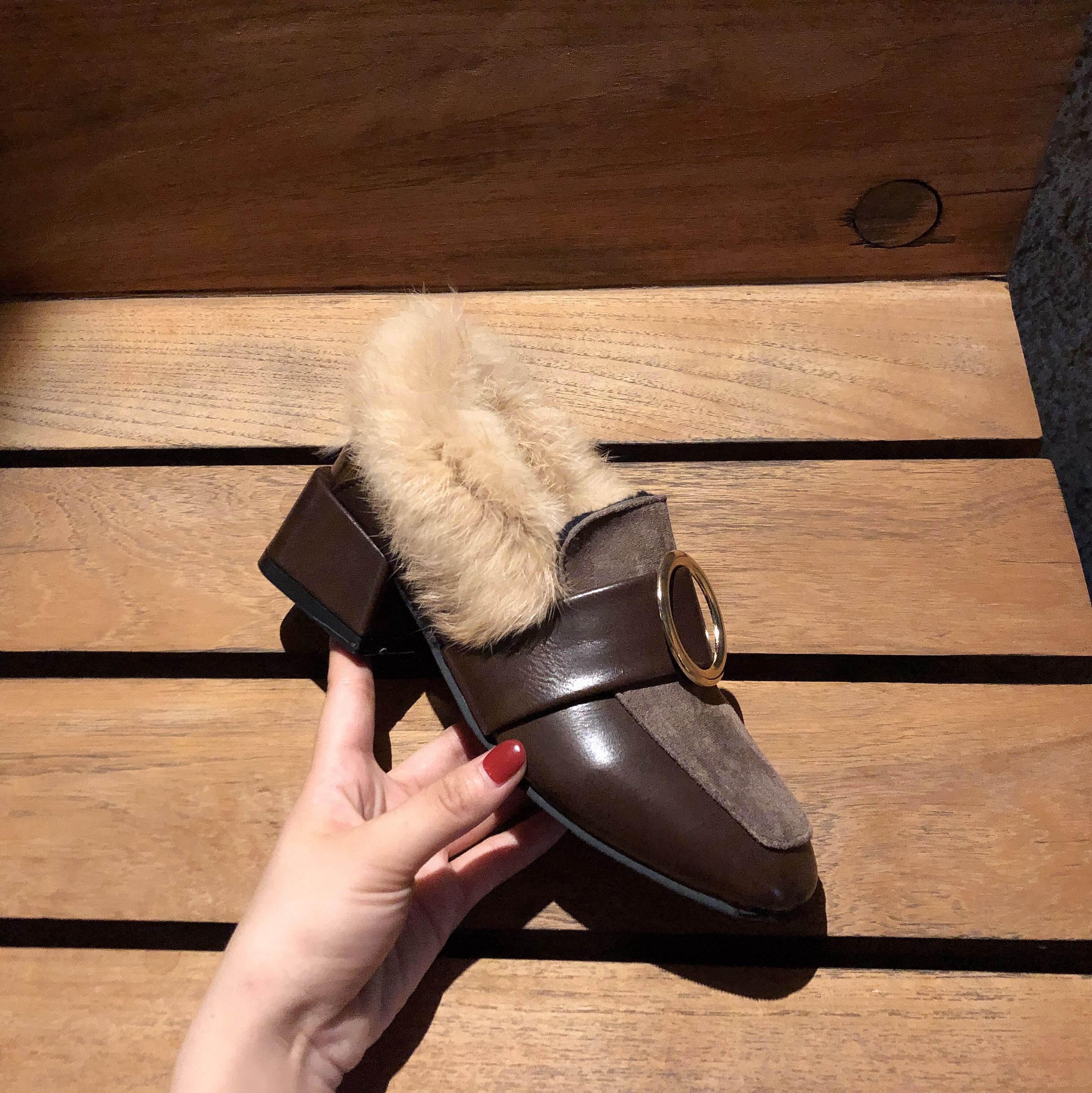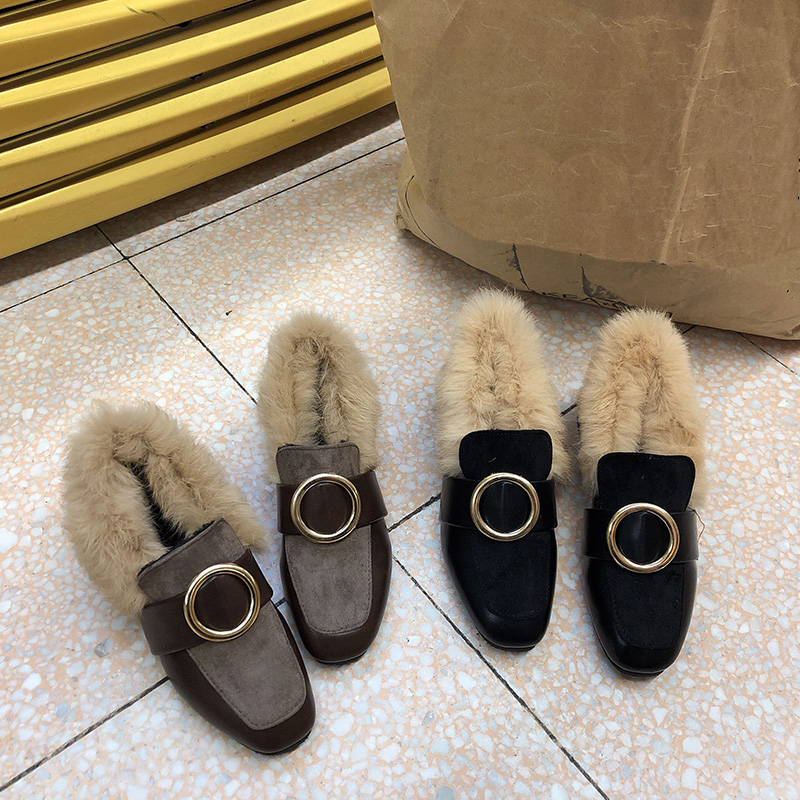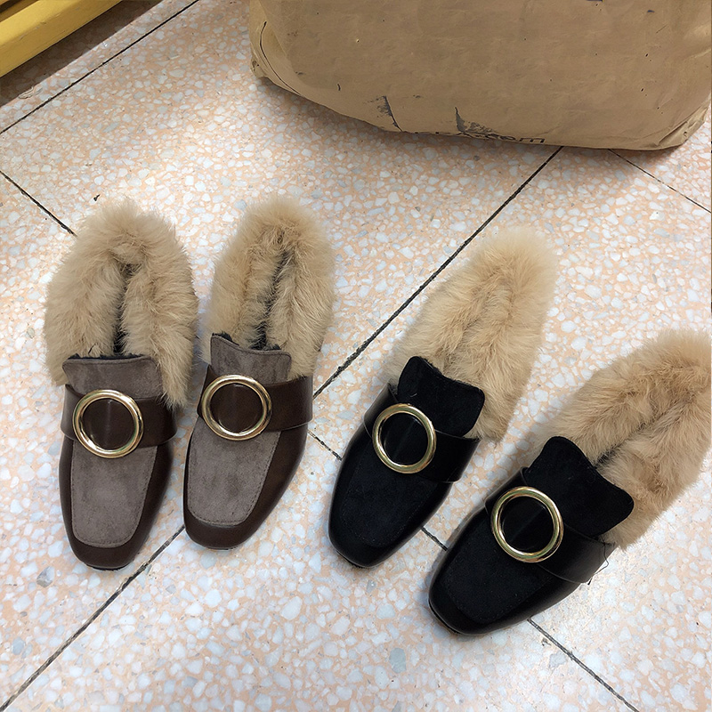秋冬季新款時尚氣質韓版粗跟毛毛鞋加絨保暖兔毛拖鞋百搭包頭鞋女