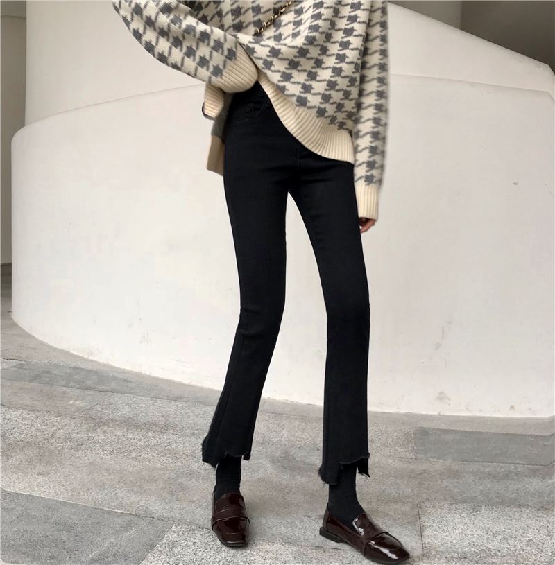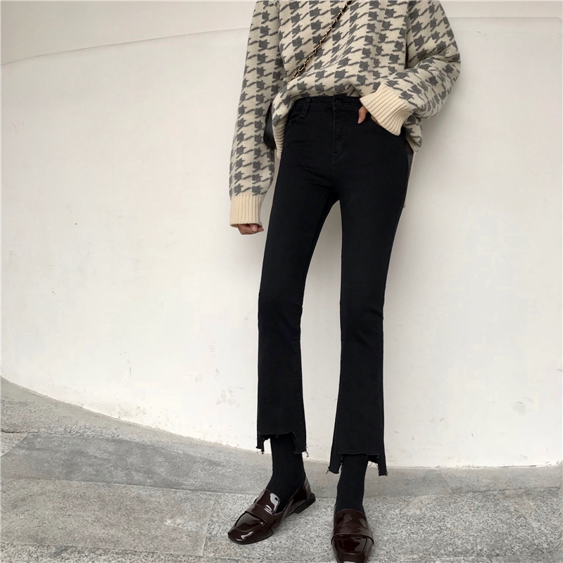 網紅同款牛仔褲女秋冬2018新款韓版顯瘦喇叭褲九分褲高腰黑色褲子