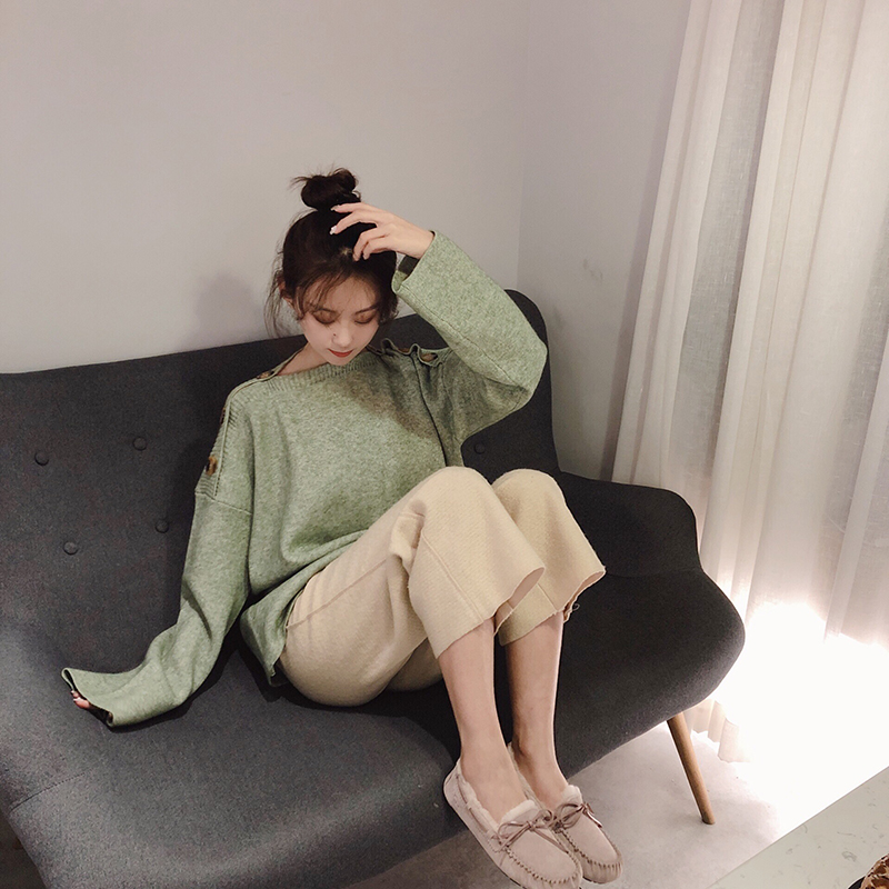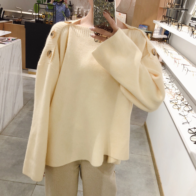 / 慵懶風套頭毛衣女2018新款秋冬韓版時尚一字領寬松純色針織衫上衣