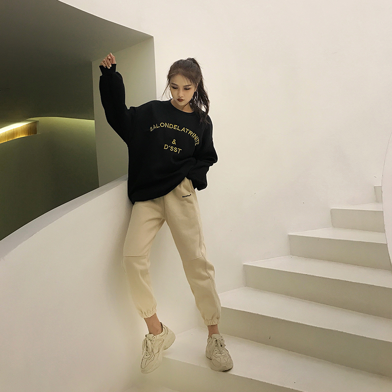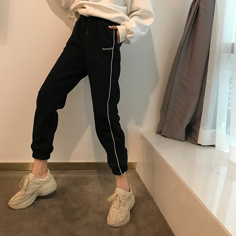 / 學生小清新韓版新款秋冬時尚chic系帶褲子女收口九分褲百搭休閑褲