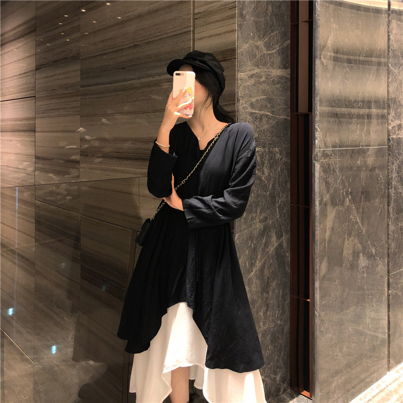 2018新款洋氣時尚套裝chic裙子兩件套長袖連衣裙外搭冷淡風裙女裝
