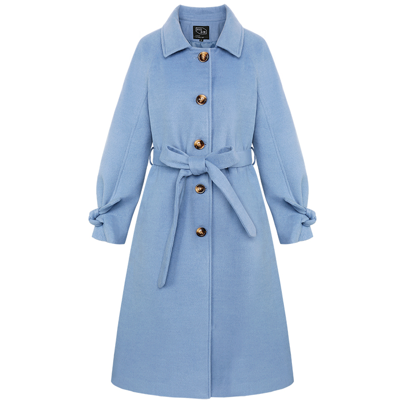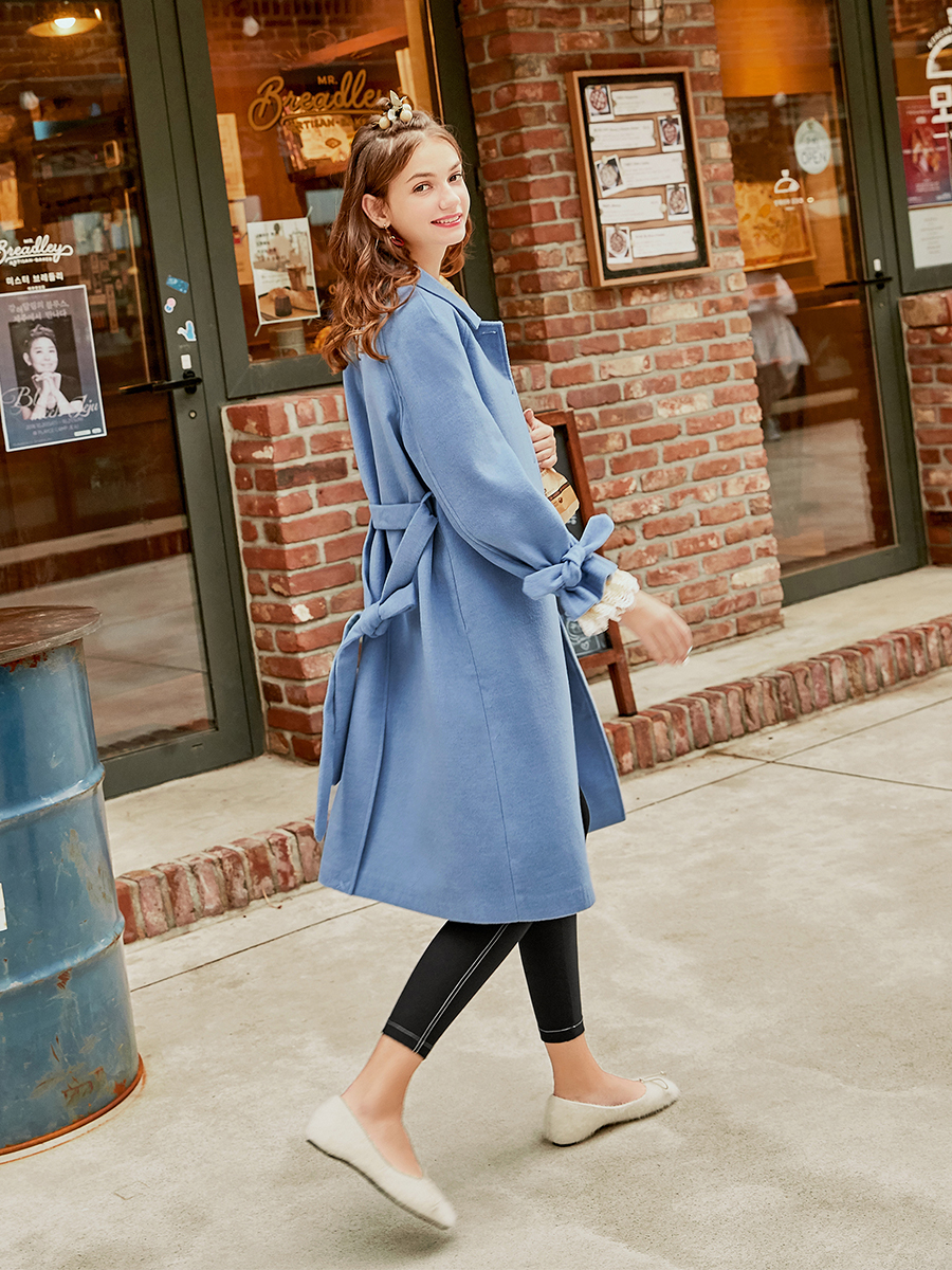 MG小象中長款過膝毛呢外套女秋冬2018新款蝴蝶結寬松休閑呢子大衣