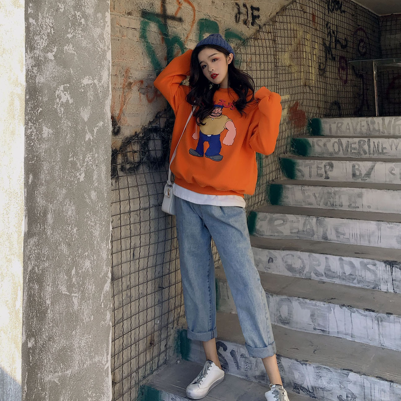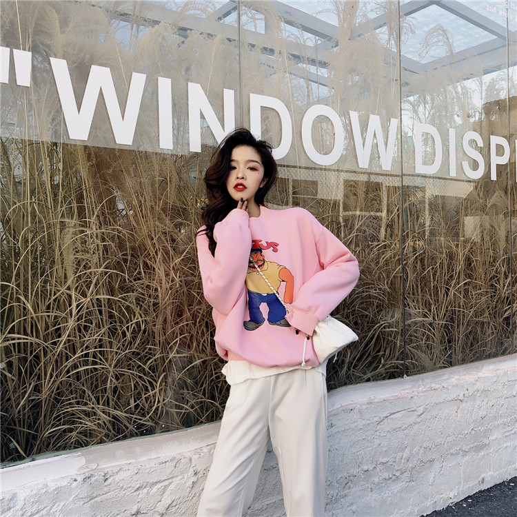/ 復古港風網紅同款加絨大力水手卡通印花圓領衛衣女秋冬2018新款潮