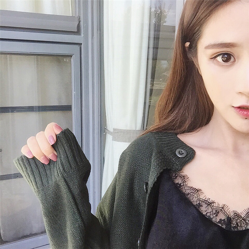 韓國chic春裝打底衫蕾絲花邊拼接V領百搭絲絨吊帶小背心女