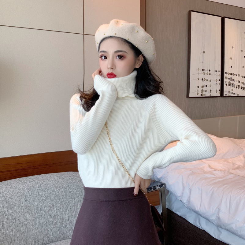 韓版百搭純色顯瘦修身高領套頭打底毛衣女秋冬2018新款針織衫~5色