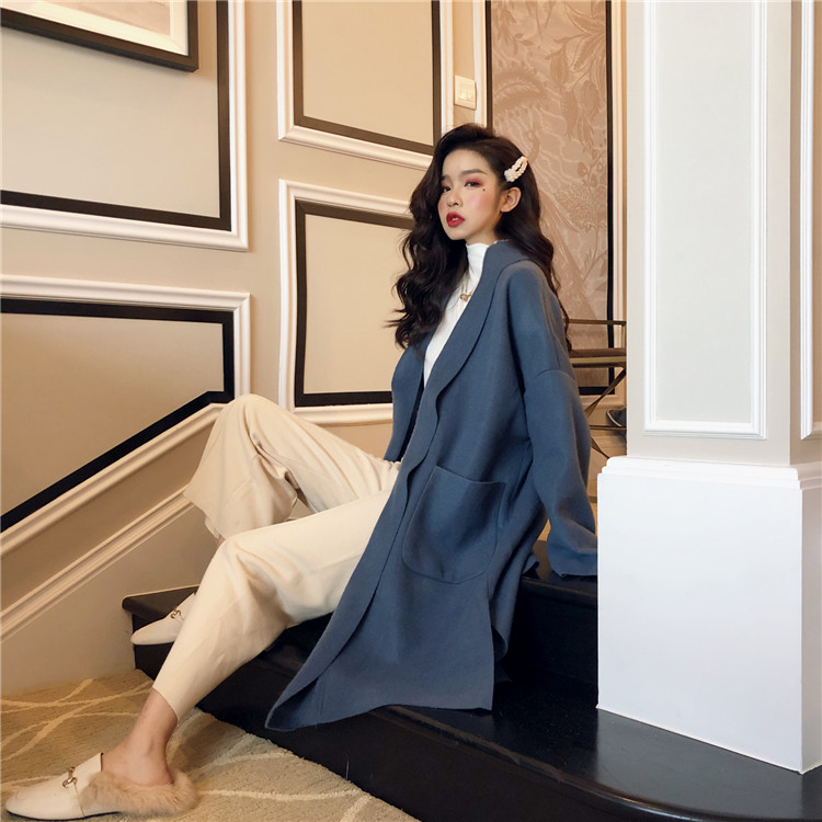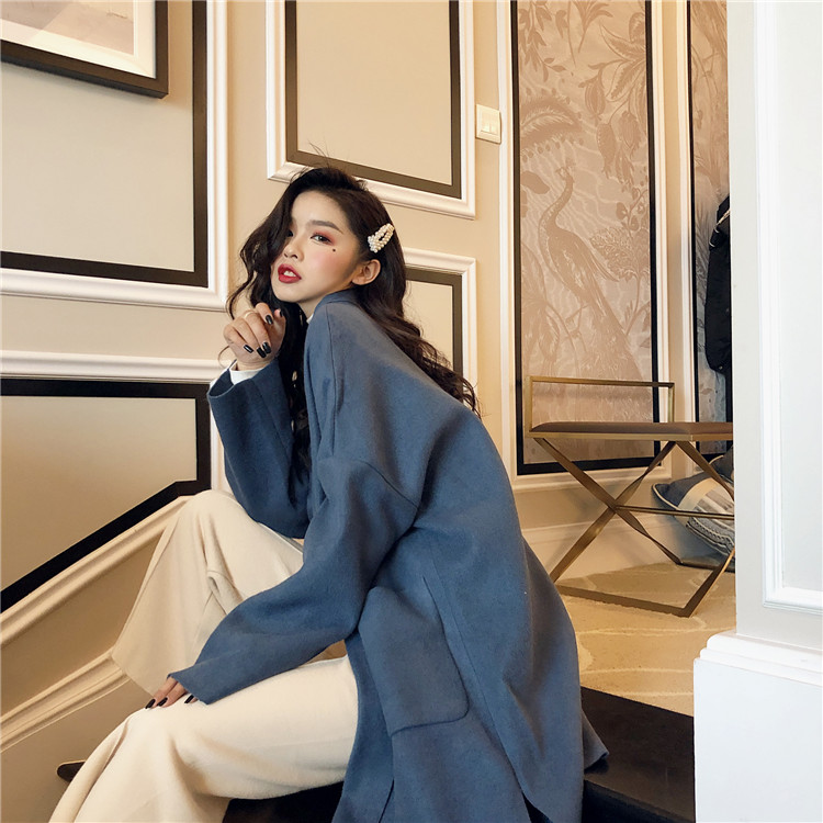 / 2018秋冬新品溫柔慵懶休閑暖色時尚百搭寬松中長款氣質毛呢外套女