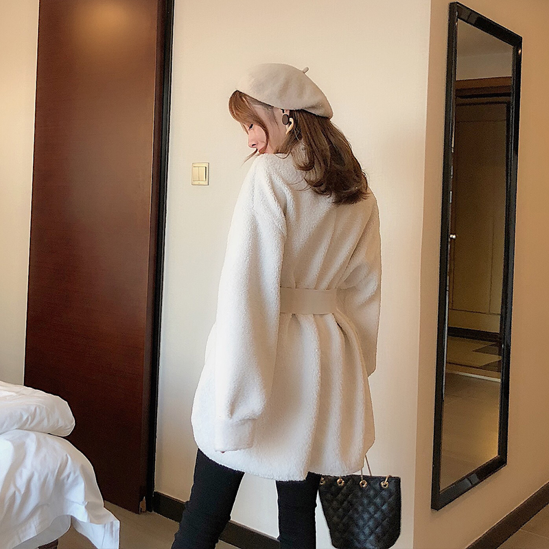復古chic時尚大衣冬季新款韓版加厚保暖毛毛寬松單排扣外套送腰帶