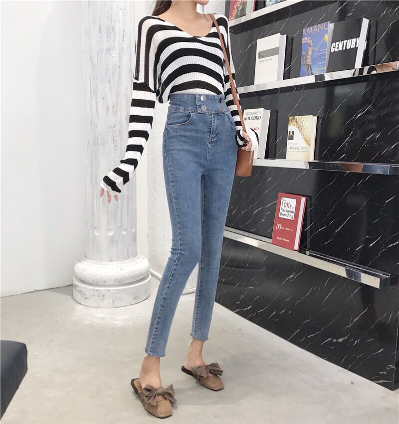 / 2018秋裝新款韓版九分褲復古chic百搭牛仔鉛筆褲緊身小腳牛仔褲女