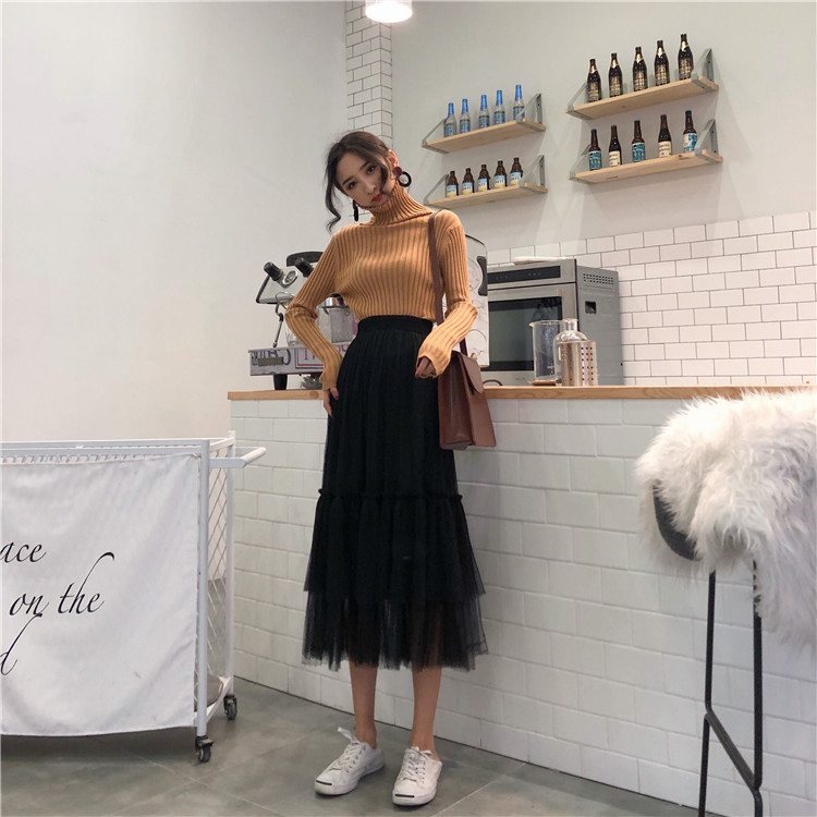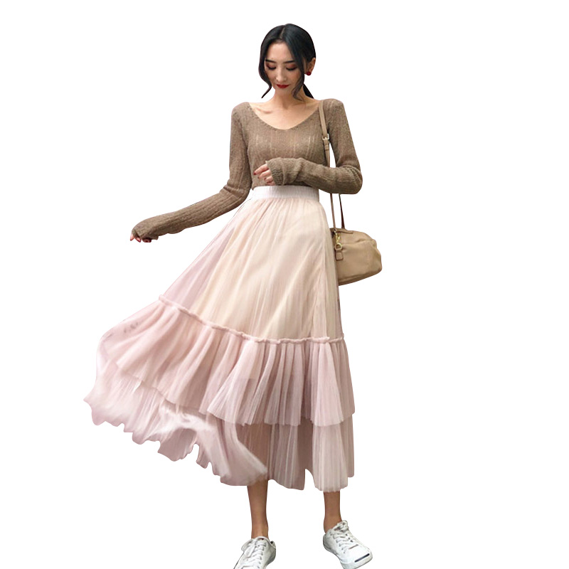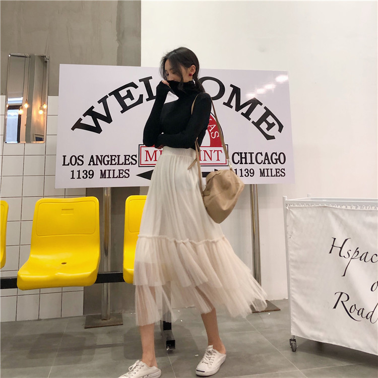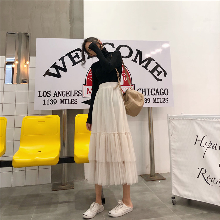 / 2018新款韓版裙子秋裝甜美氣質仙女顯瘦百褶蓬蓬網紗中長款半身裙