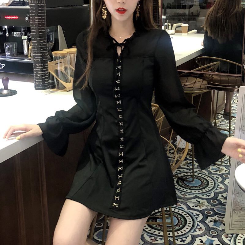 / 晚晚風新款修身顯瘦2018秋裝雪紡名媛連衣裙小黑裙復古裙初戀裙子