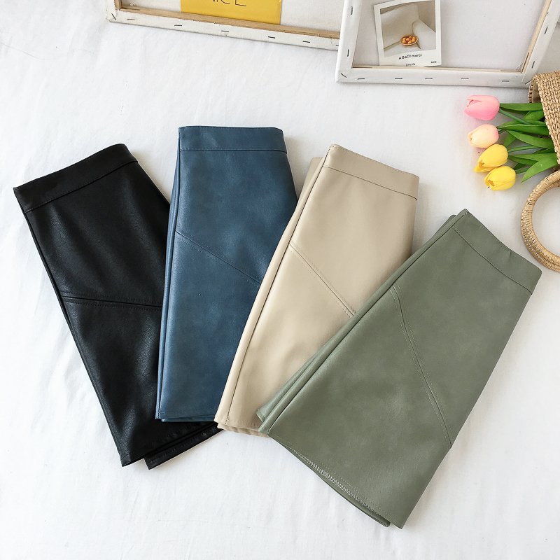 秋季新款韓版高腰時尚復古chic百搭拼接pu皮短裙潮半身裙A字裙女