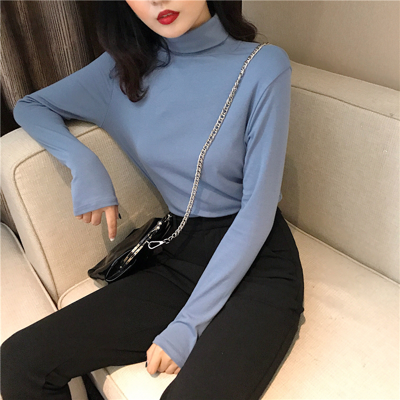 港味2018秋裝女復古百搭純色高領打底衫秋季高腰休閑褲鉛筆褲套裝