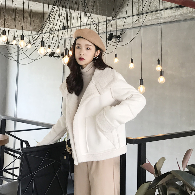 / 復古溫柔百搭慵懶西服領短款加厚保暖羊羔毛開衫外套女2018新款潮
