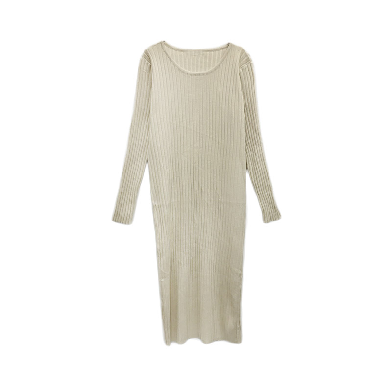 / 韓版圓領螺紋長袖中長款針織毛衣女秋冬2018新款套頭打底連衣裙女