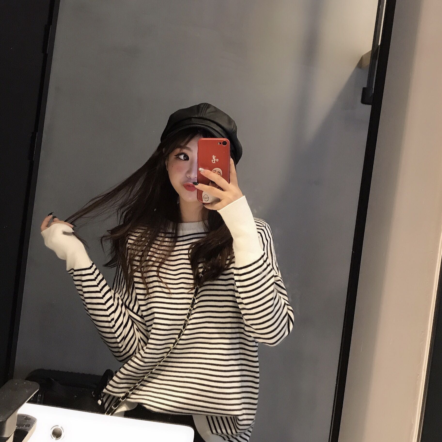 復古港味條紋包心莎柔軟寬松長袖針織上衣冬季韓版毛衣女2018新款