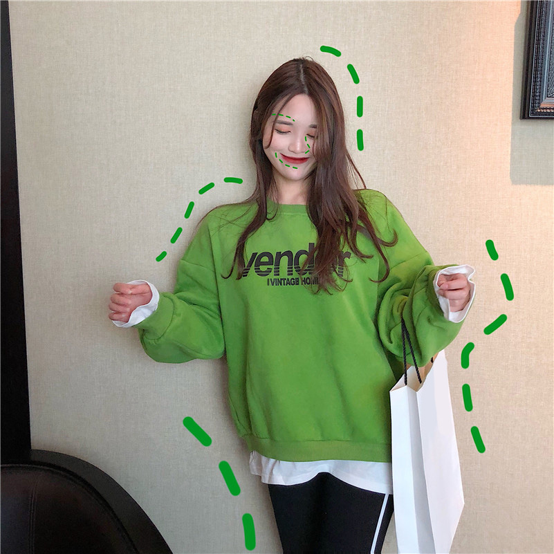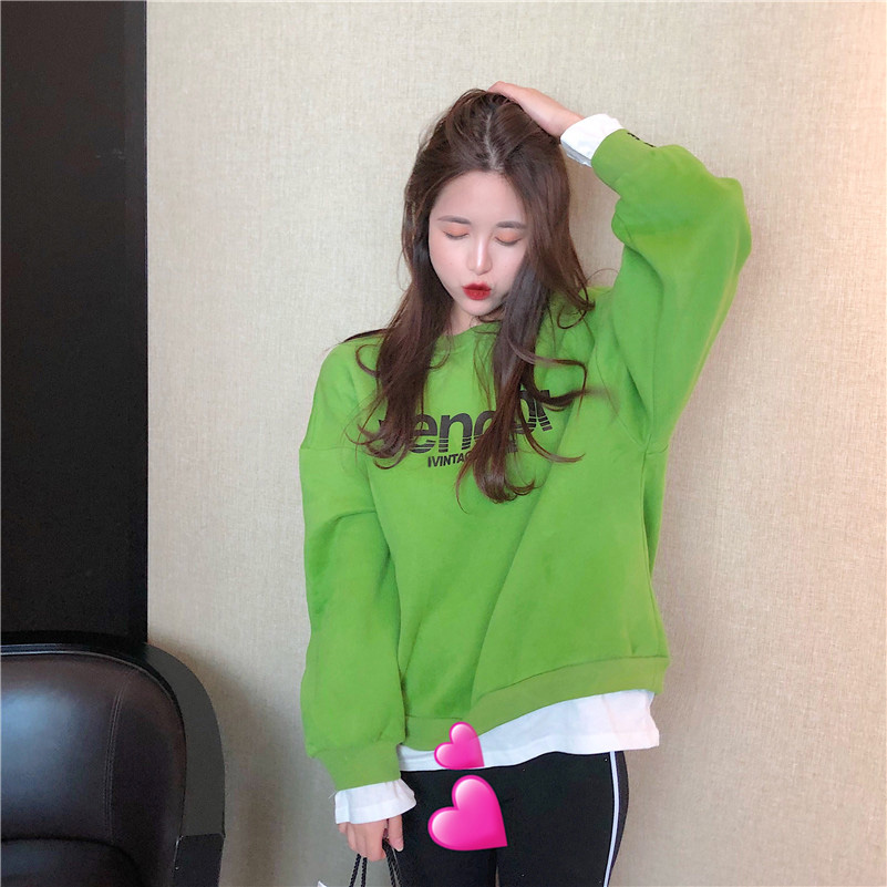 新款復古女長袖韓版寬松慵懶風假兩件套頭衛衣打底褲冬季時尚套裝