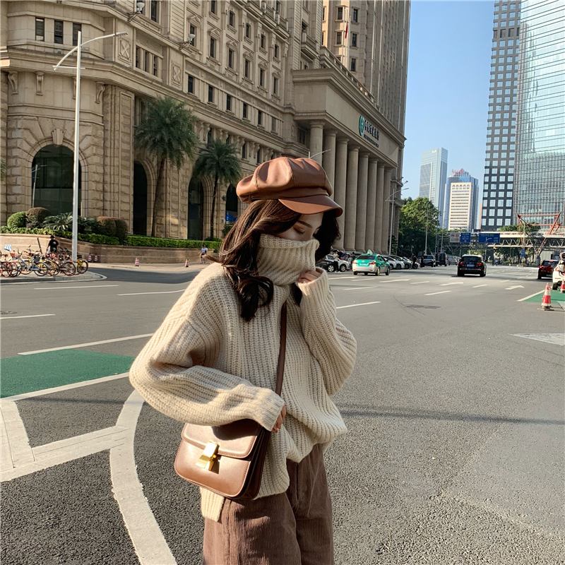 / 時尚高領慵懶風毛衣女秋冬2018新款+寬松時尚卷邊燈芯絨短褲套裝