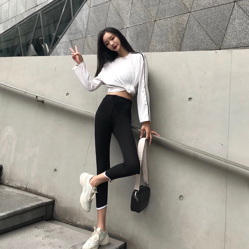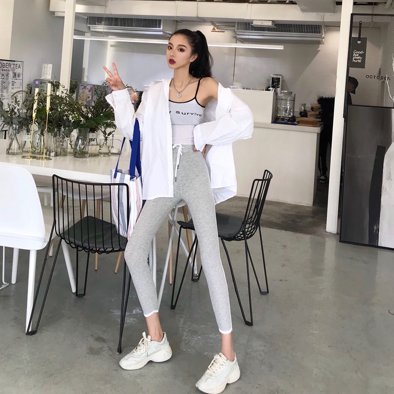 / 2018新款百搭復古chic防曬九分小腳褲高腰顯瘦緊身外穿運動打底褲