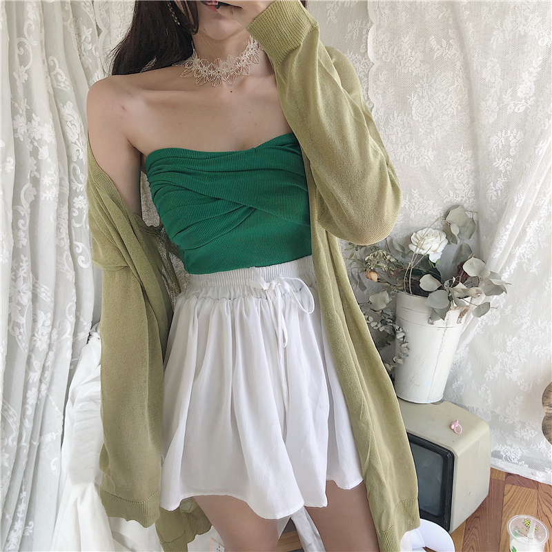 / 韓版chic風百搭無肩帶防走光裹胸顯瘦純色復古內搭修身交叉抹胸女