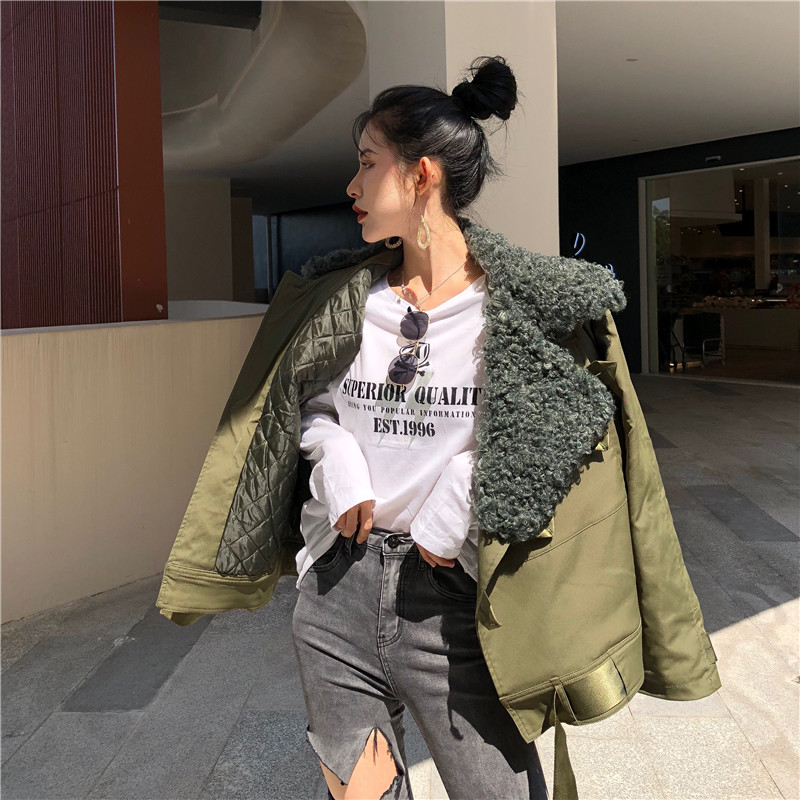 / 港風外套女冬裝2018新款軍工裝大衣羊羔毛領復古寬松機車加厚棉服