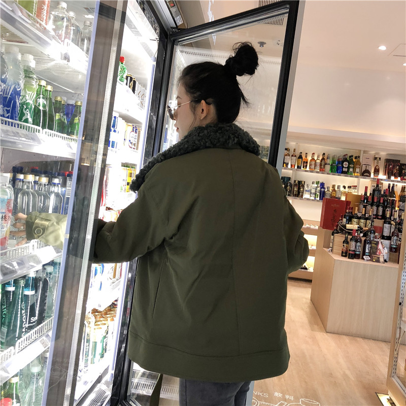 港風外套女冬裝2018新款百搭寬松百搭羊羔毛內膽皮棉服棉衣女上衣