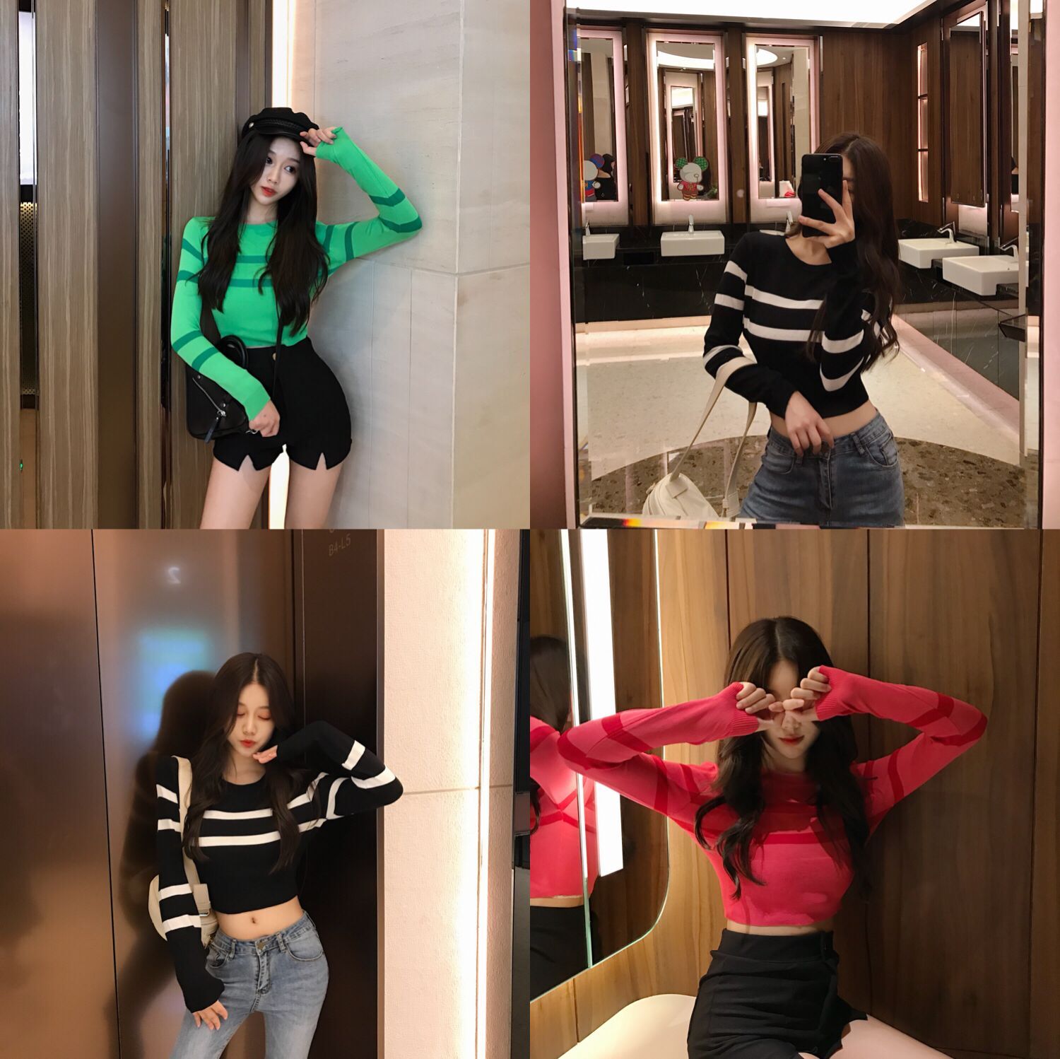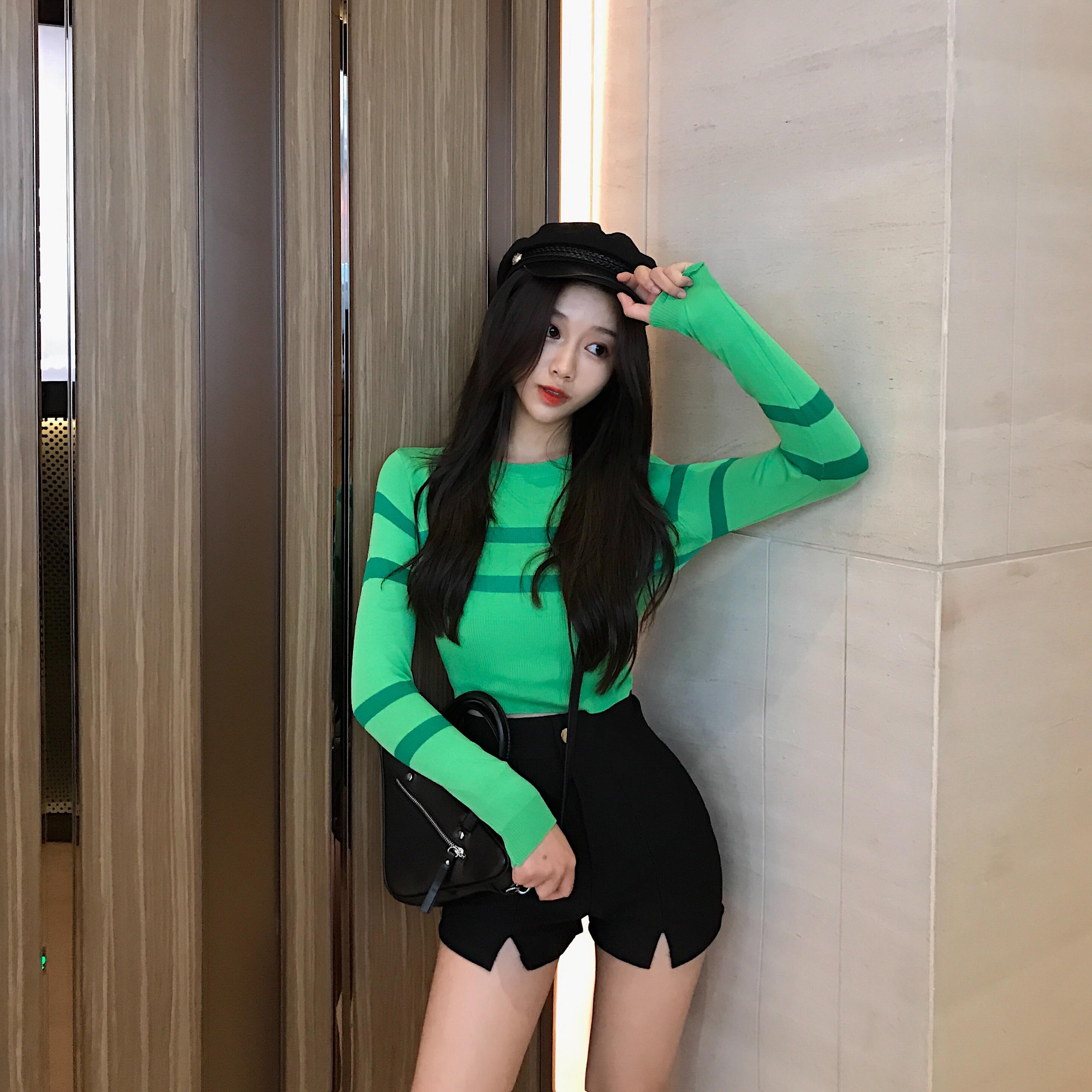 2018新款韓版上衣女chic百搭修身長袖秋季短款針織衫毛衣打底衫潮