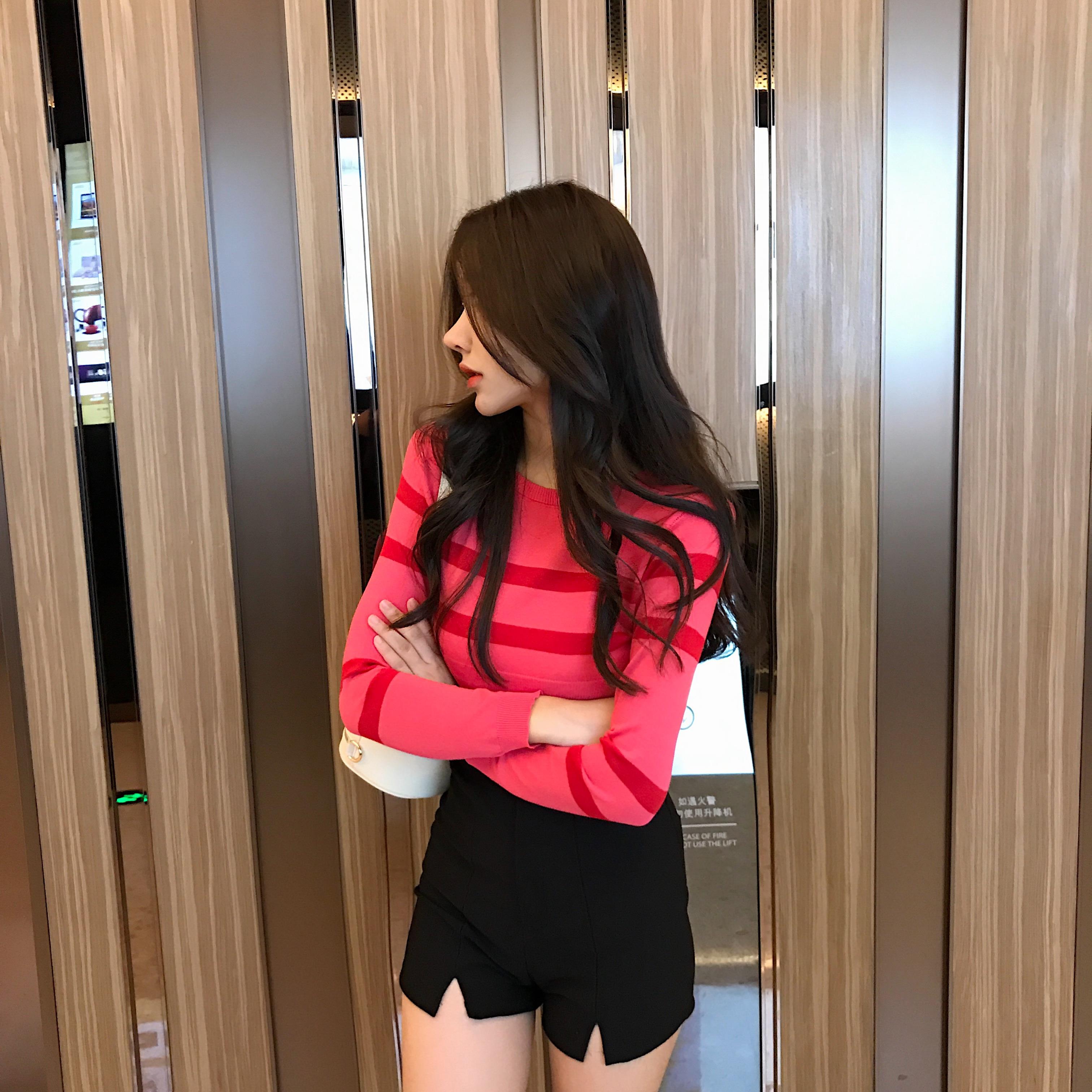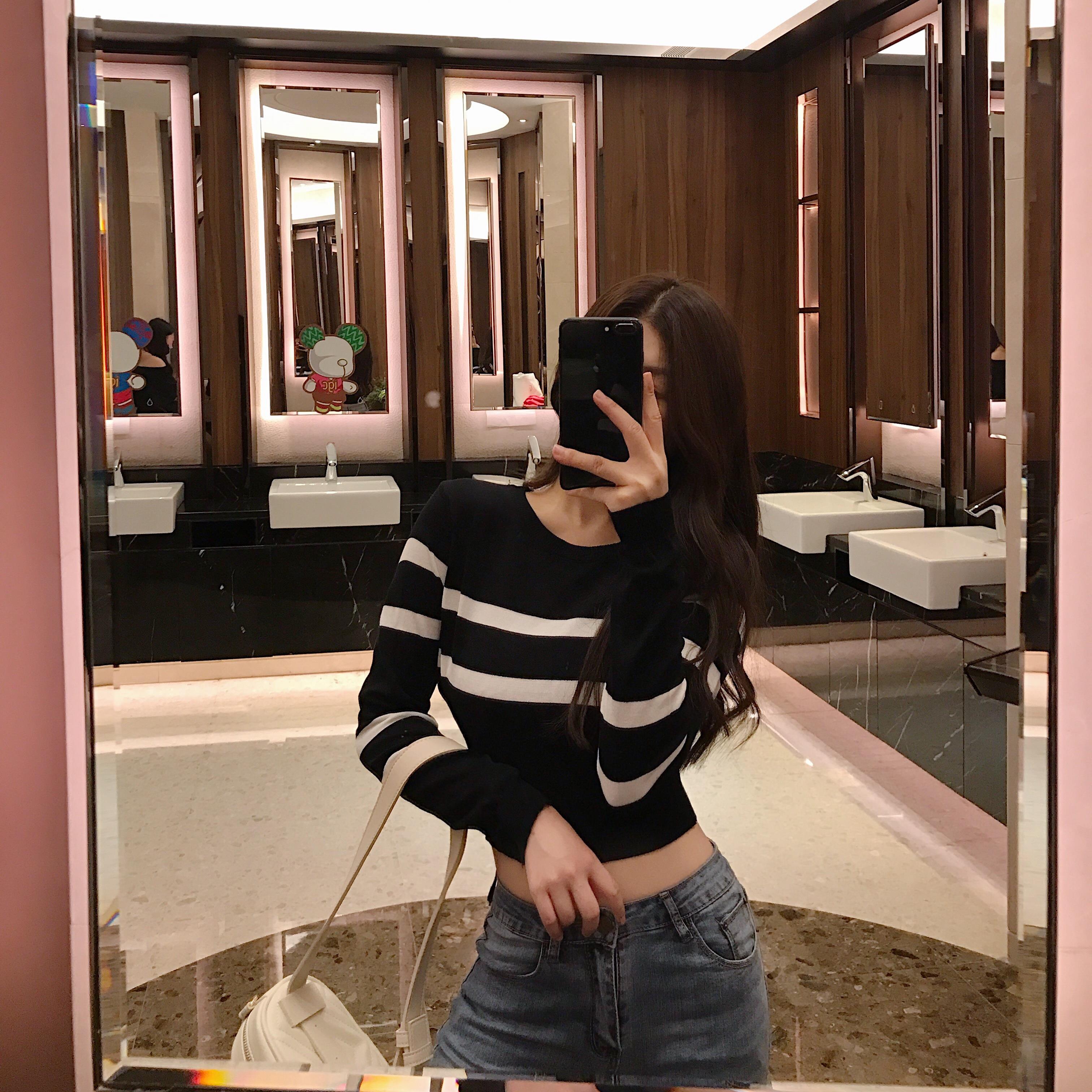 / 2018新款韓版上衣女chic百搭修身長袖秋季短款針織衫毛衣打底衫潮