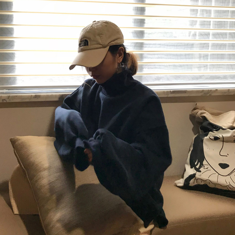 / 復古韓國chic牛油果綠高領燈籠袖加厚加絨保暖套頭衛衣女2018新款
