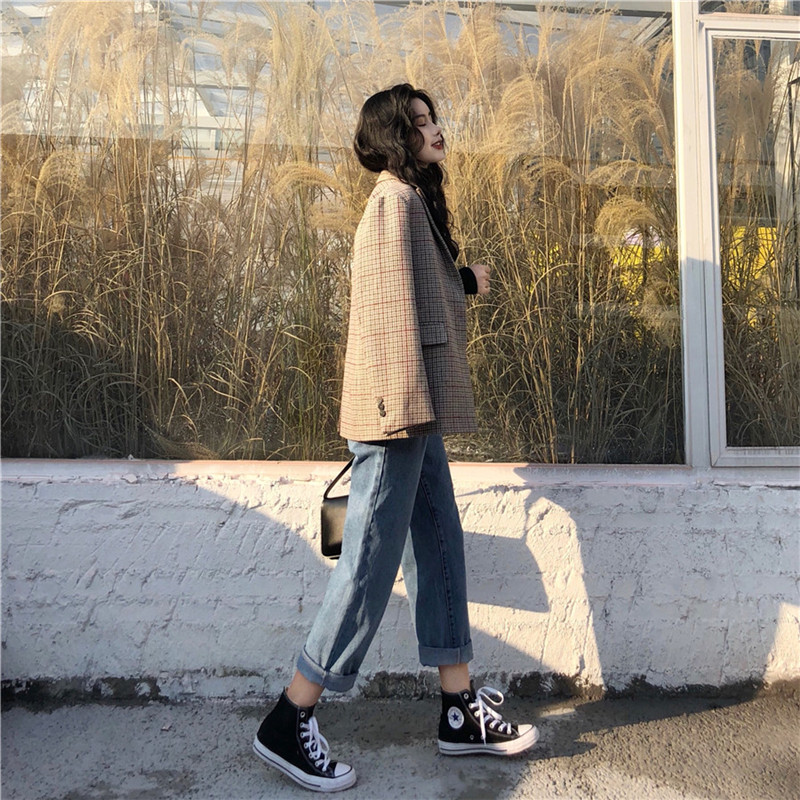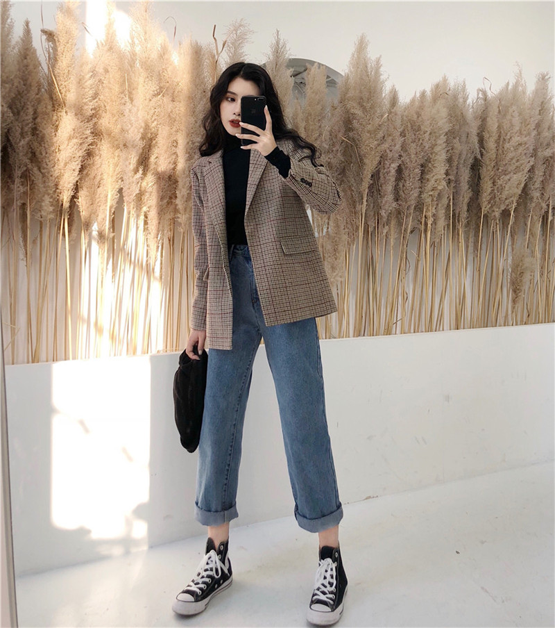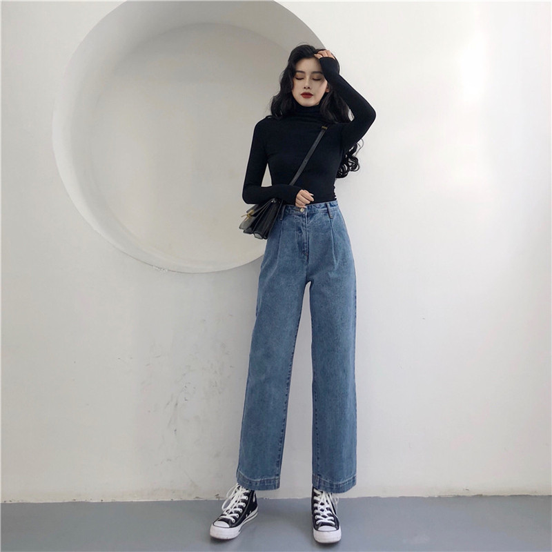 / 褲子新款韓版時尚長褲氣質復古百搭chic風高腰寬松直筒褲牛仔褲女