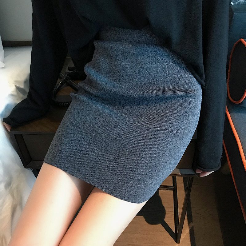 2018新款韓版兩件套女寬松套頭針織衫針織高腰包臀半身裙時尚套裝