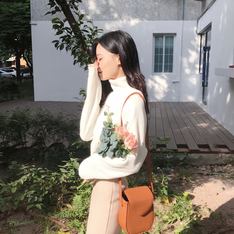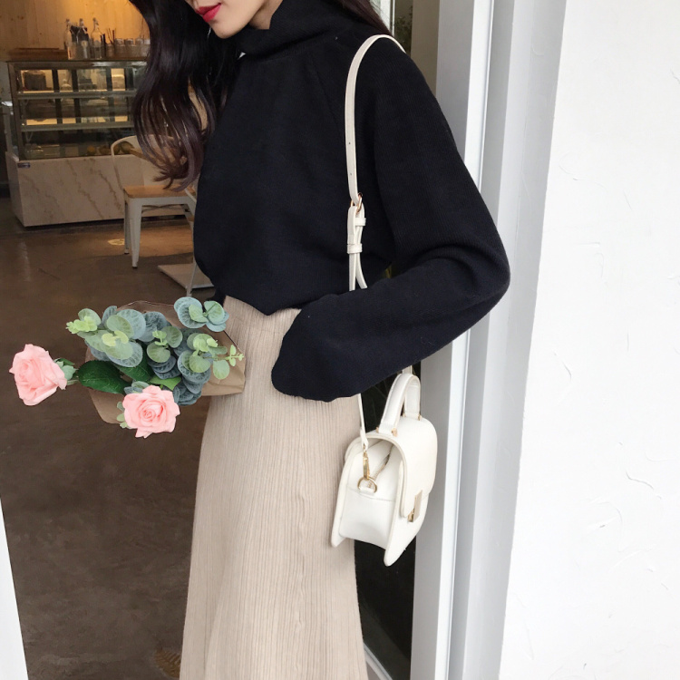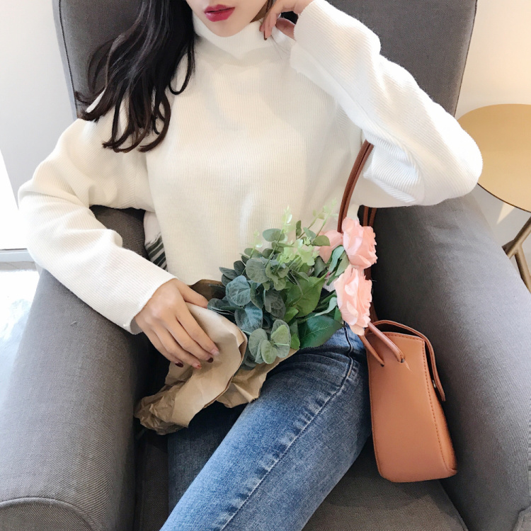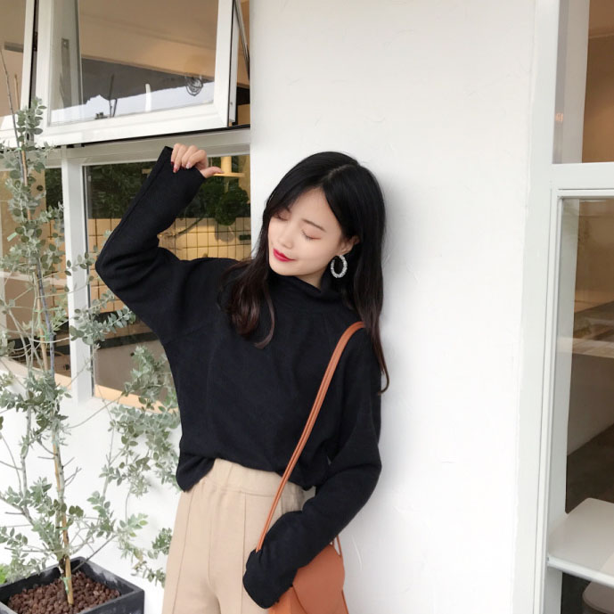 / 復古港味chic簡約純色百搭款寬松高領套頭針織衫毛衣女2018新款潮