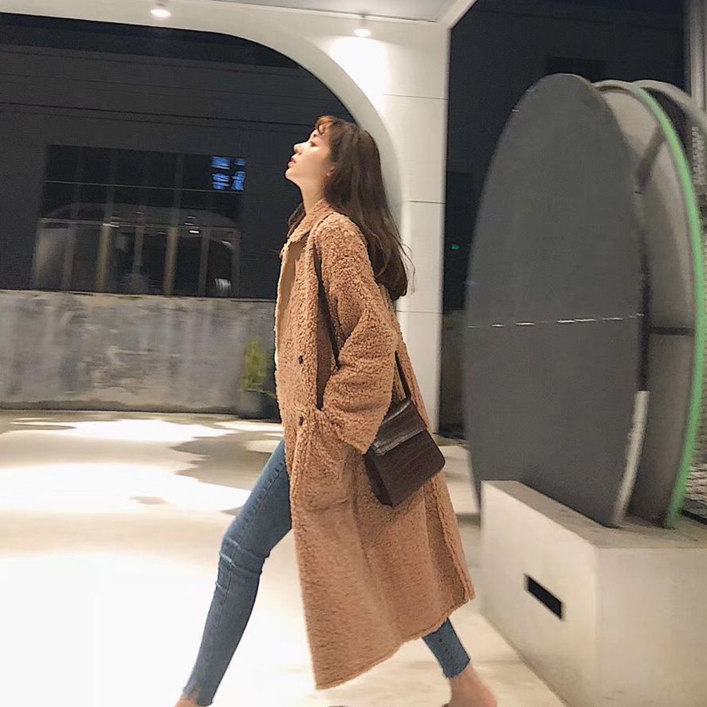 港味毛呢外套女秋冬大衣女新款2018氣質翻領保暖羊羔毛中長款外套