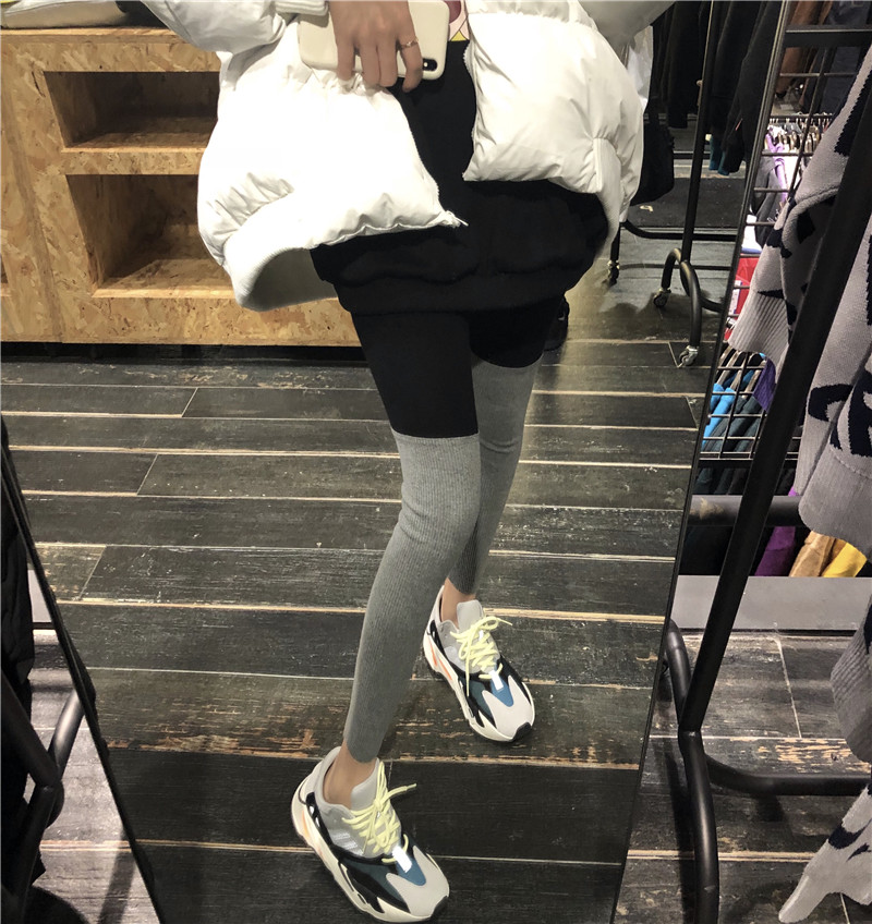 2018新款韓版軟妹針織打底褲女學生灰色長褲修身外穿彈力褲小腳褲