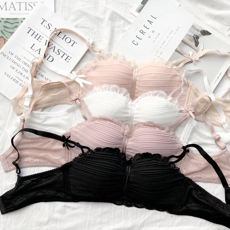 / 新款時尚甜美無鋼圈少女內衣上托聚攏小胸罩日系蕾絲花邊雪紡文胸