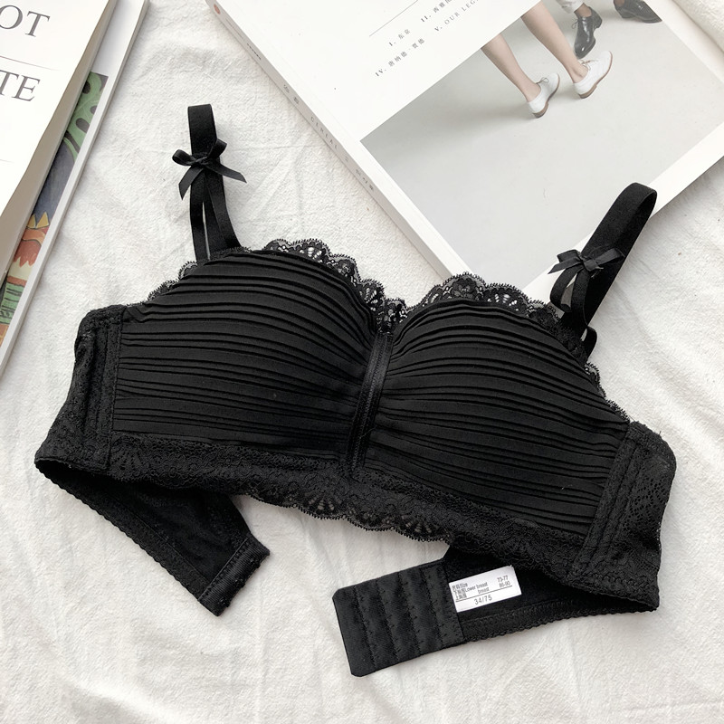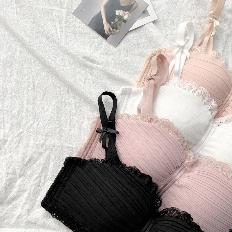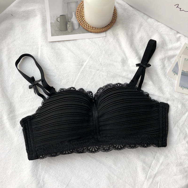 新款時尚甜美無鋼圈少女內衣上托聚攏小胸罩日系蕾絲花邊雪紡文胸