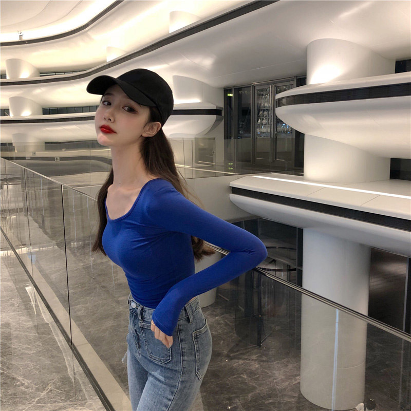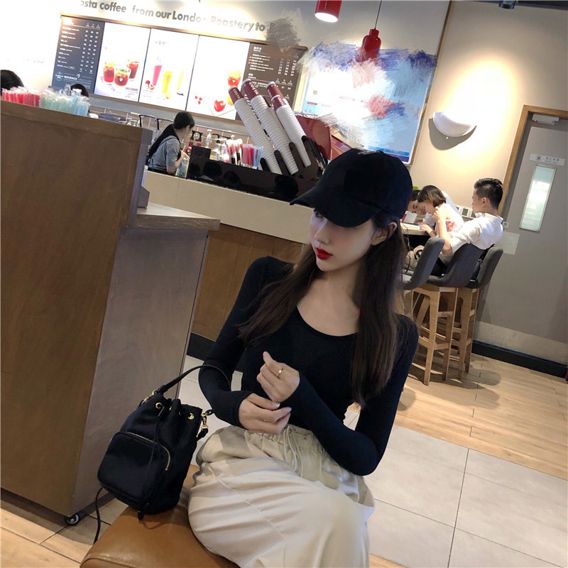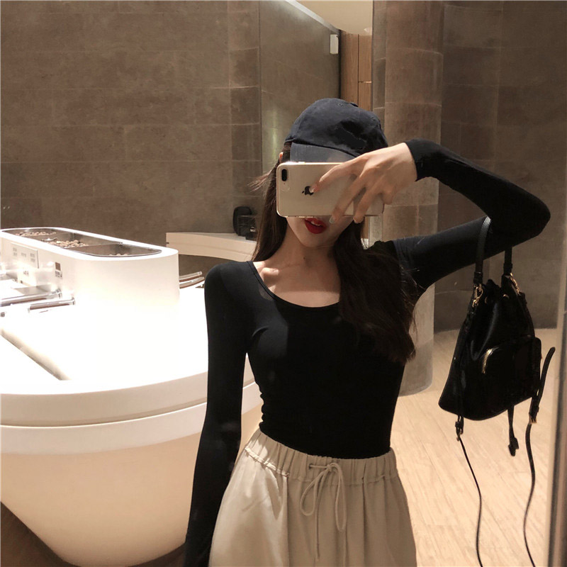 / 2018秋裝韓版新款緊身T恤打底衫時尚百搭復古chic長袖顯瘦上衣女