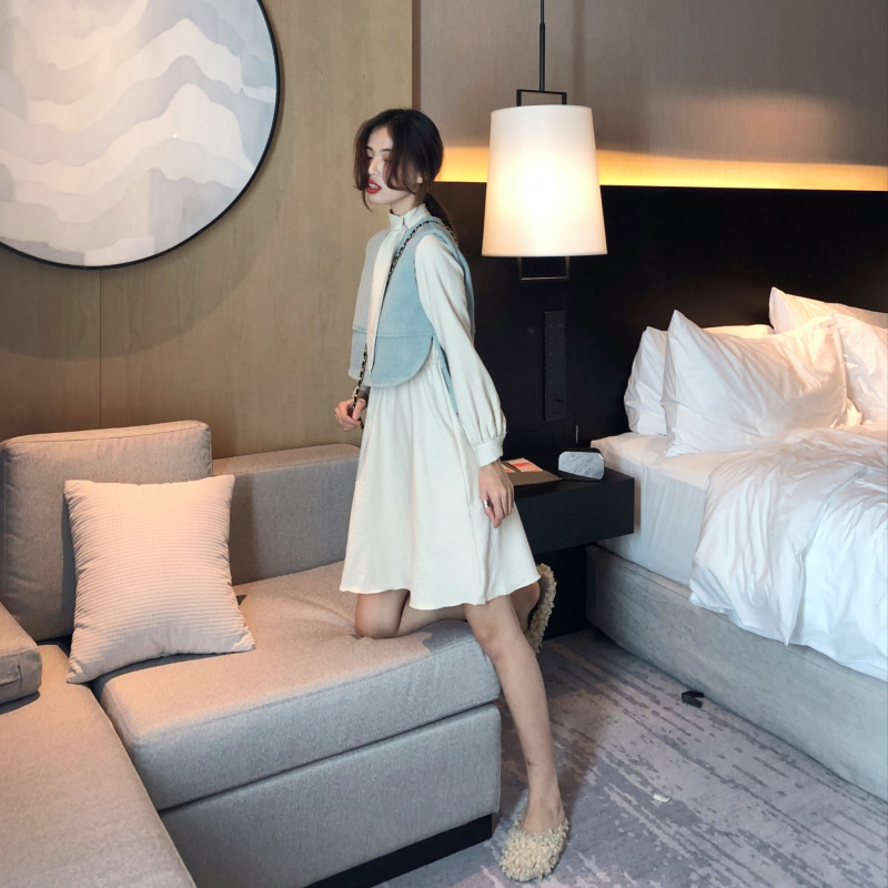 慵懶風秋裝女2018新款復古夾克牛仔外套女春秋+純色V領吊帶連衣裙