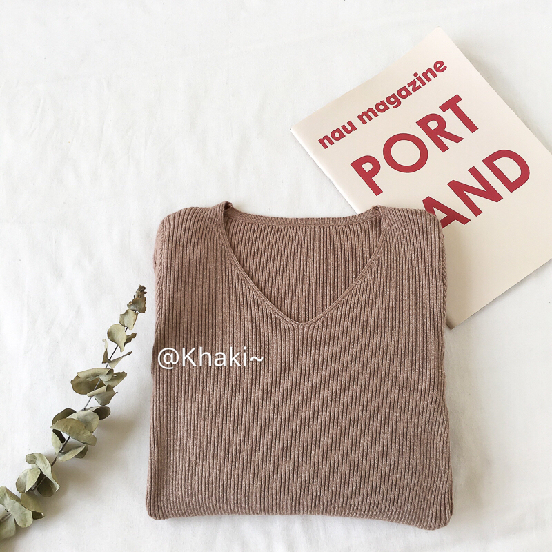 / 韓版氣質V領針織長袖修身緊身保暖打底衫上衣復古套頭顯瘦毛衣女