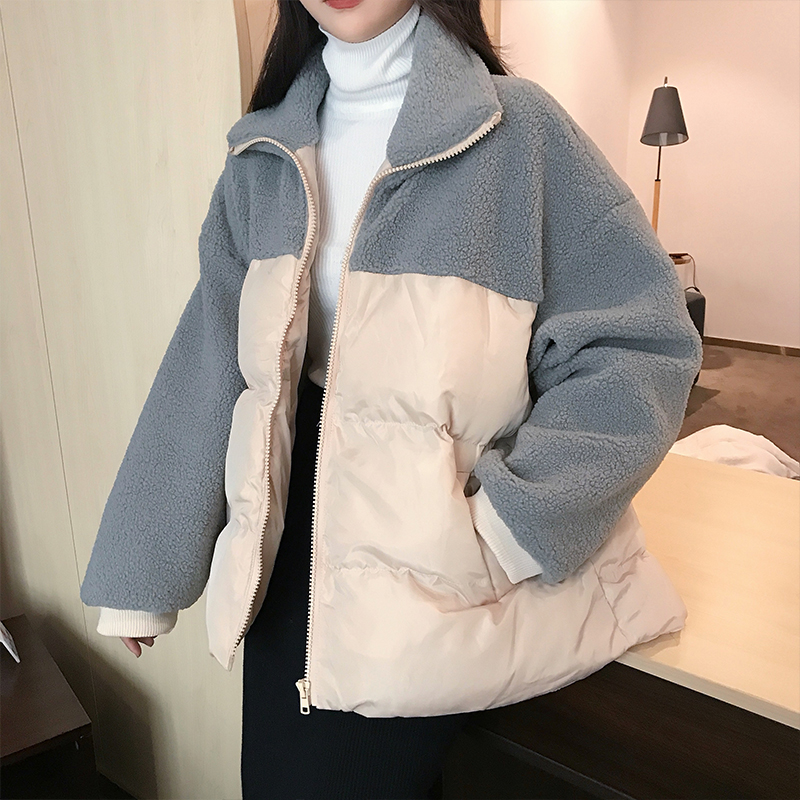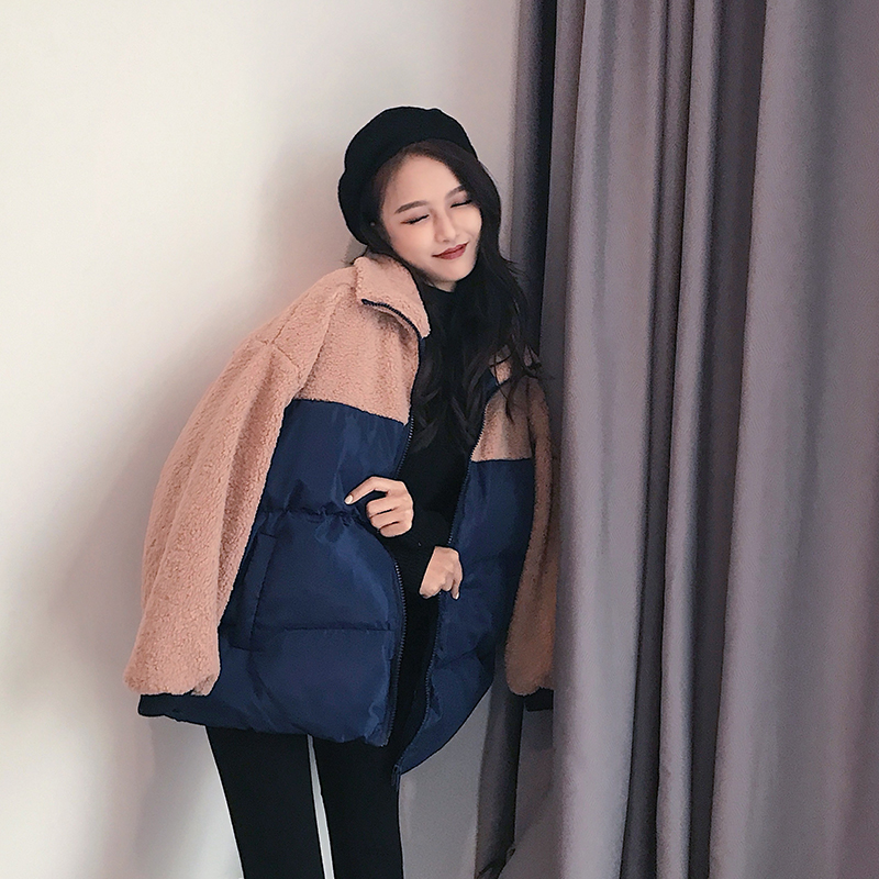 / 時尚設計感百搭新款韓版寬松毛毛拼接棉衣復古chic女裝氣質外套潮