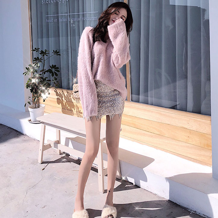 針織衫秋冬慵懶寬松短款毛衣女2018新款外套+高腰包臀皮裙半身裙