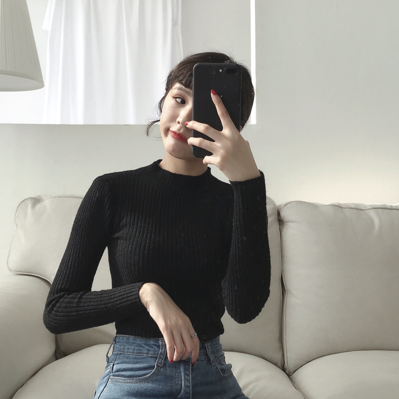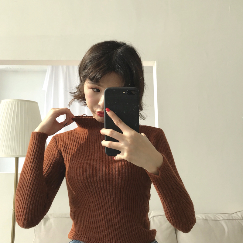純色中高領加厚坑條打底針織衫內搭保暖毛衣女秋冬2018新款上衣潮