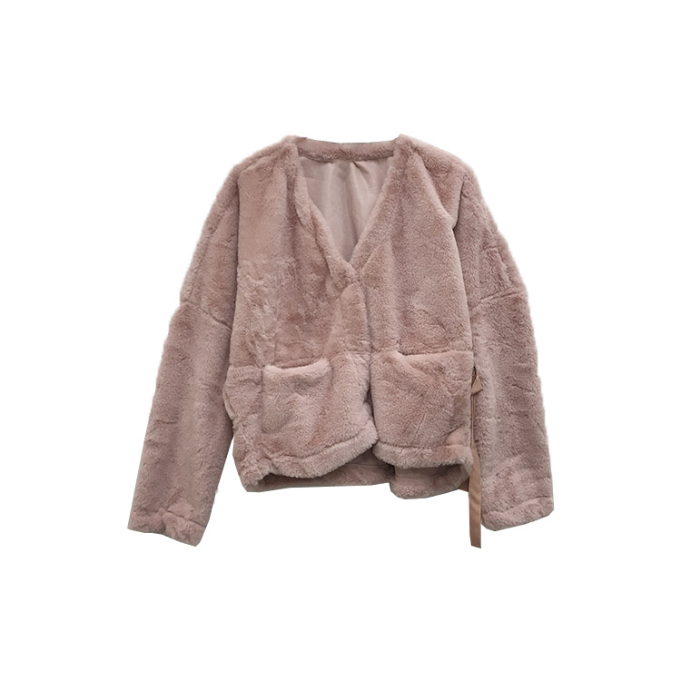 港風外套女秋裝2018新款時尚短款V領仿貂絨毛茸茸百搭休閑外套潮